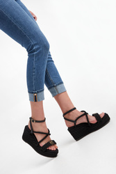 - Podwinięcie u dołu z biżuteryjną ozdobą.