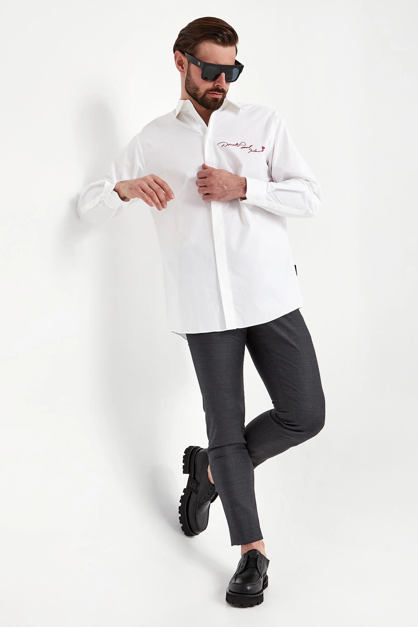 - Kontrastowe haftowane napisy.