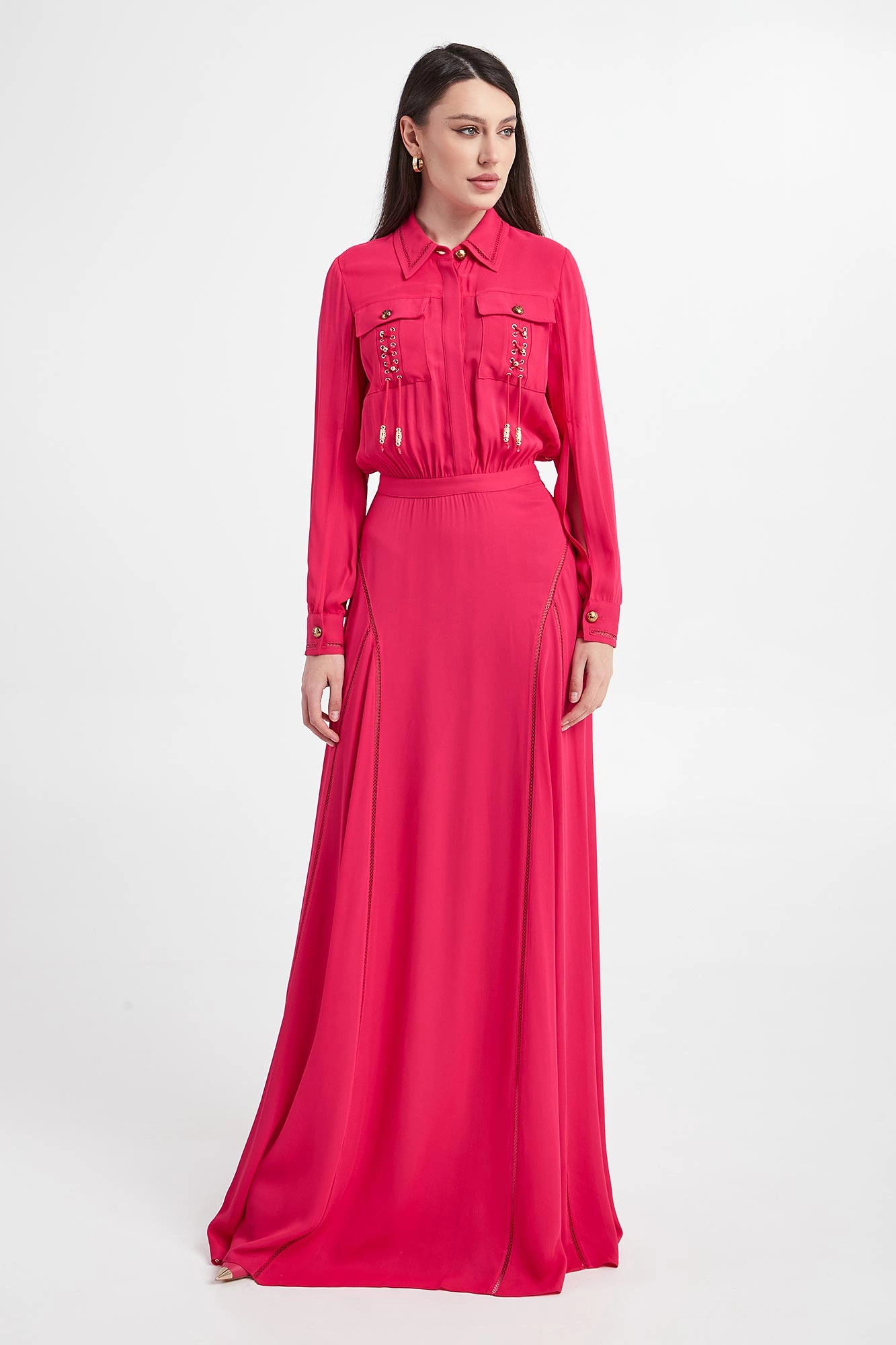 - Zapięcie boczne na guziki, haftkę i zamek.