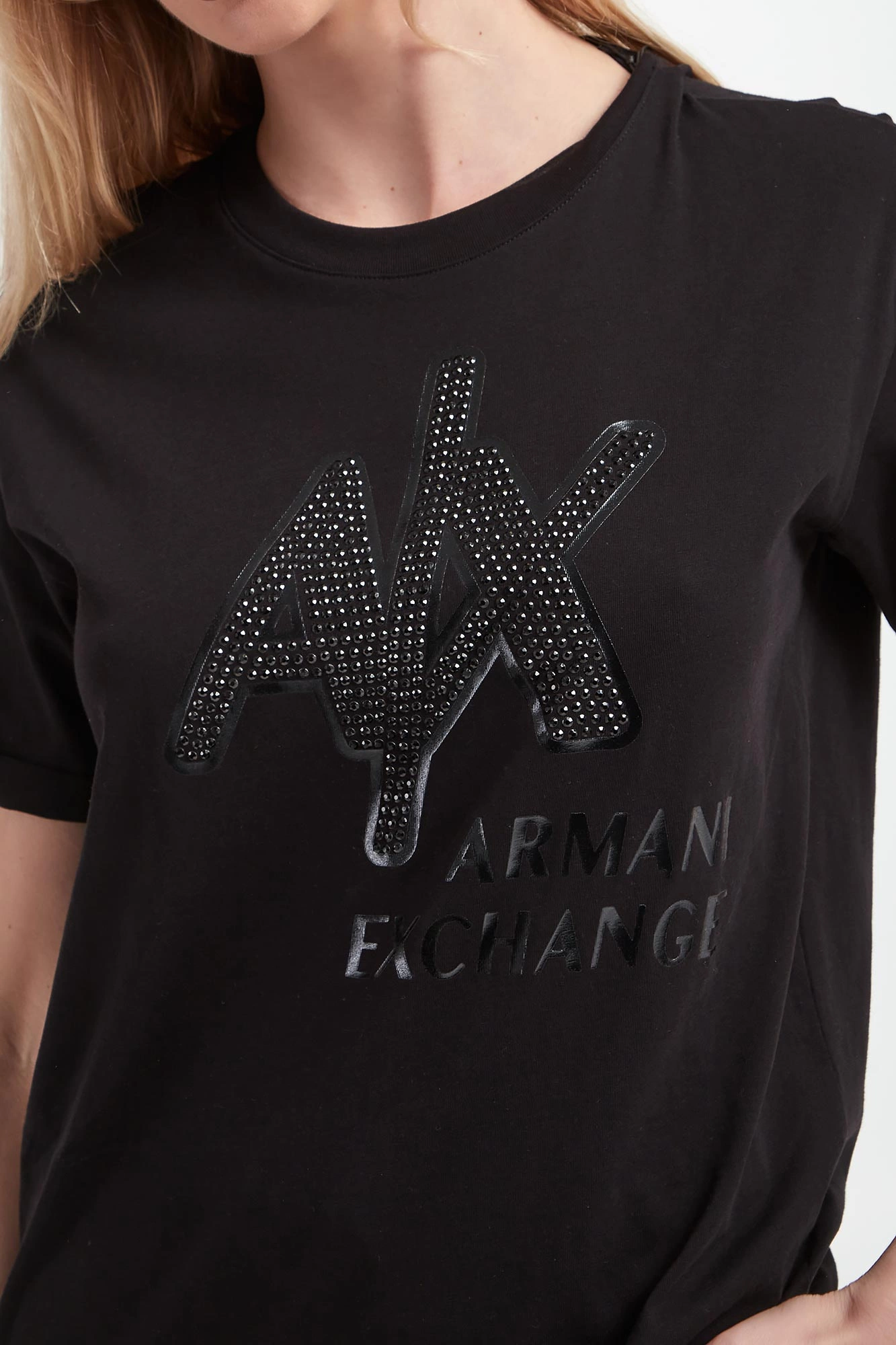 T-shirt damski marki Armani Exchange.