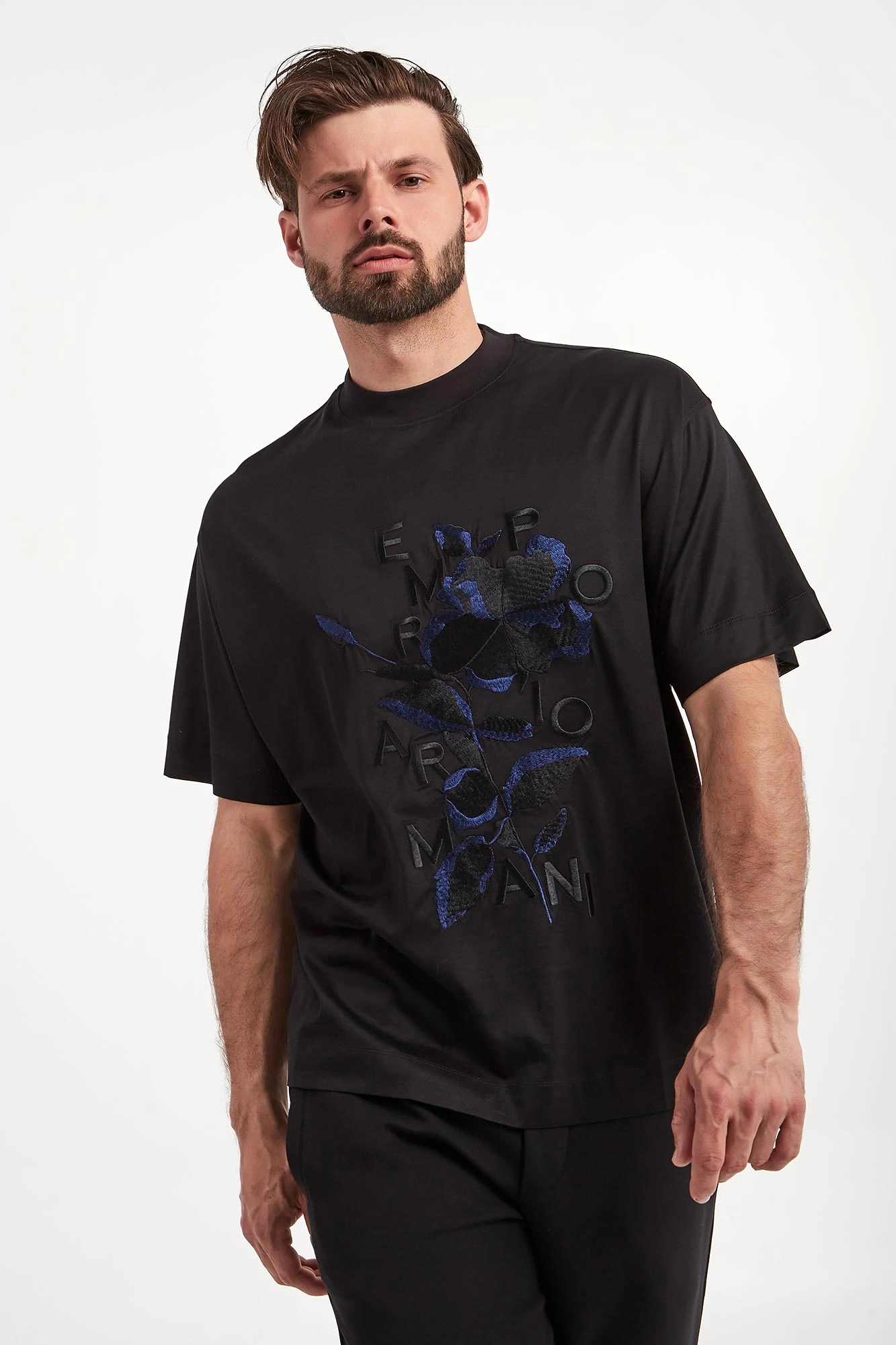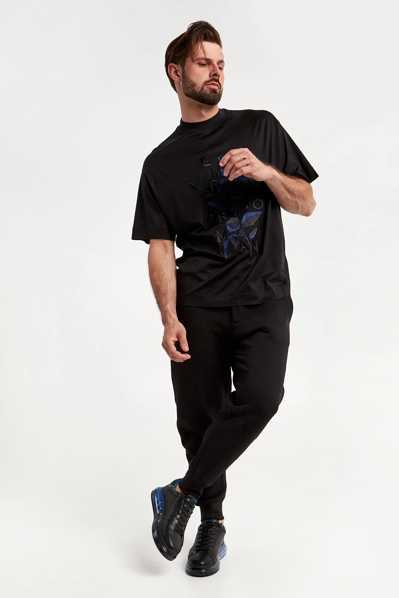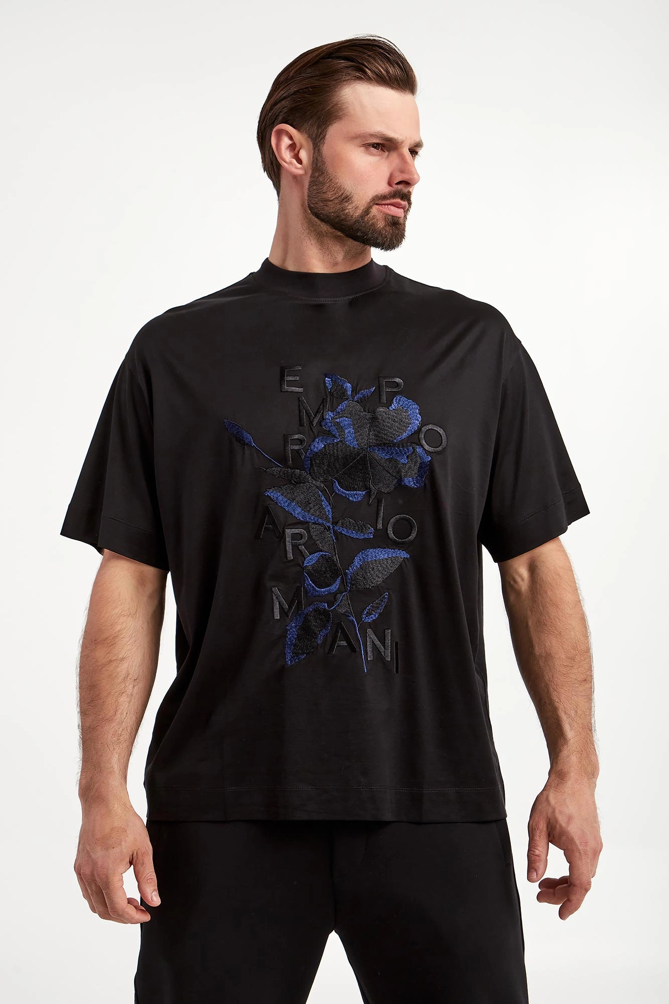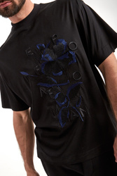- Kwiatowy wzór w kolorze czarno-granatowym.
