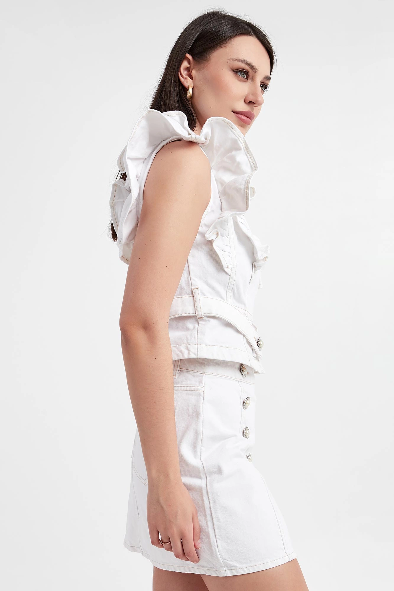 - W talii szlufki i pasek z ozdobnym guzikiem.