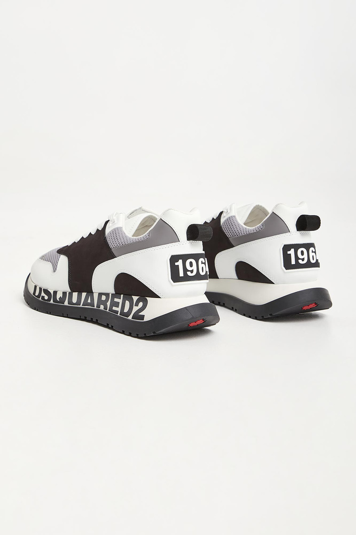 - Wstawki materiału z siatki i czarno-szarej skóry.