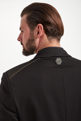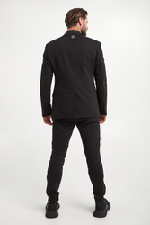 Garnitur męski marki Philipp Plein w czarnym kolorze. Wykonany mieszanki tkanin z wiskozą.