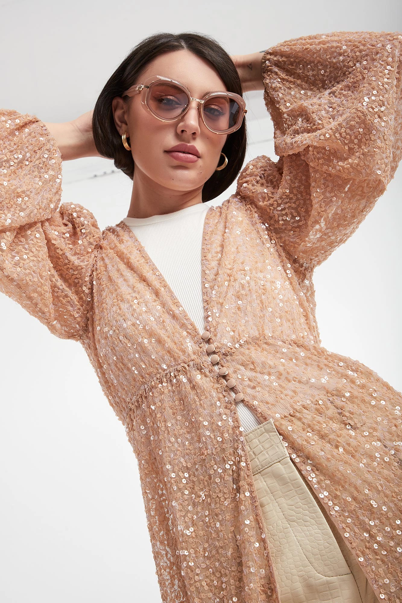 Modelka na zdjęciu, przy wzroście 177 cm, ma na sobie rozmiar 34.
