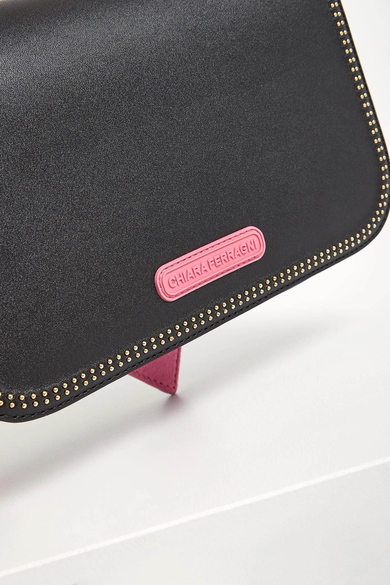- Kontury i logo wykończone drobnymi ćwiekami w złotym kolorze.