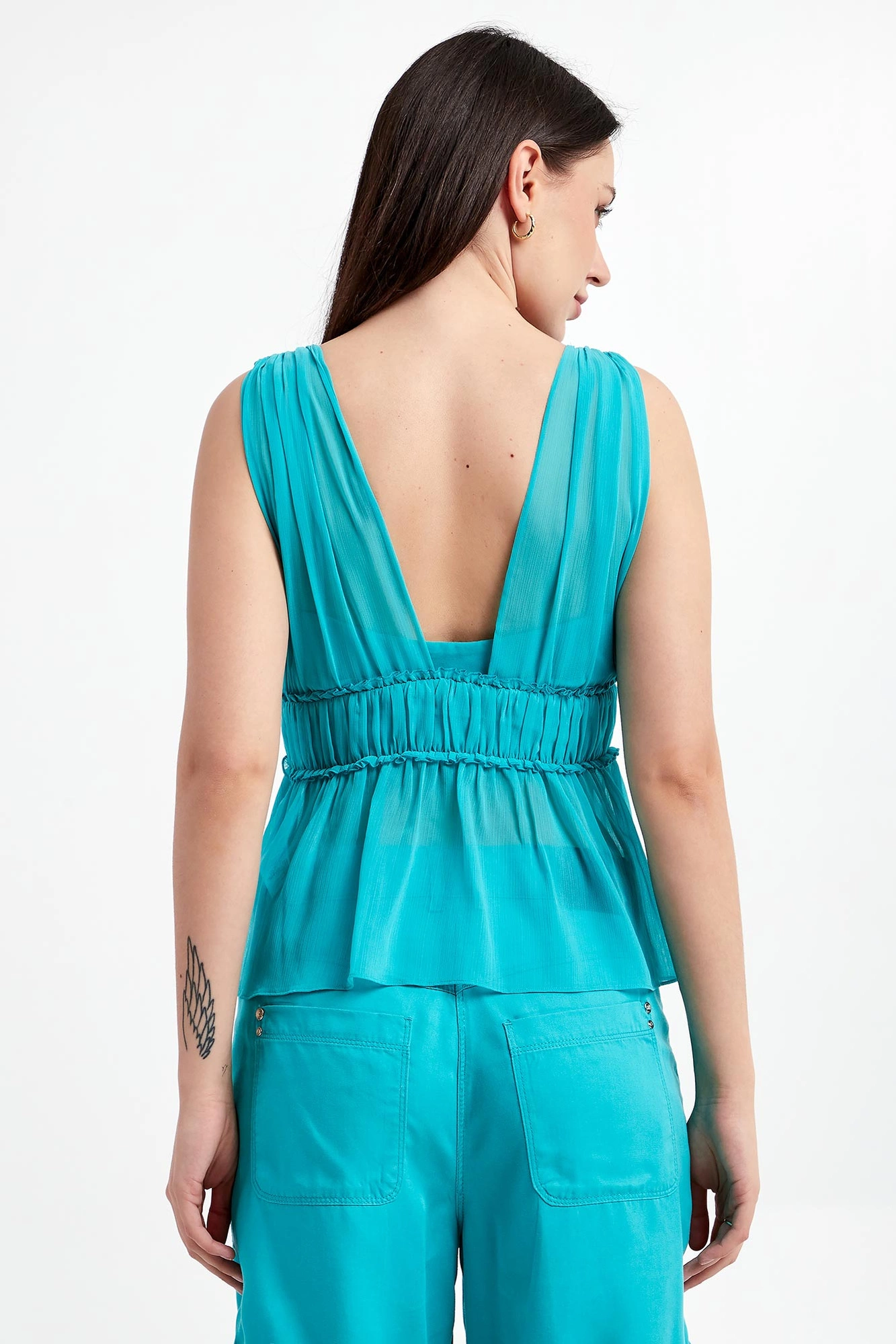 - Głęboki dekolt v-neck z przodu i z tyłu.