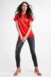 - Kolor czerwony, wpadający w kolor pomarańczowy.