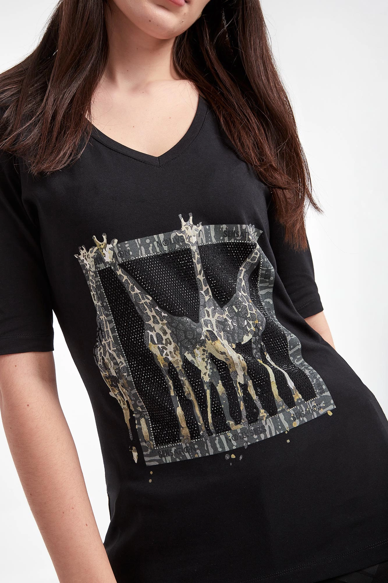 - Połyskujący nadruk z motywem żyrafy.