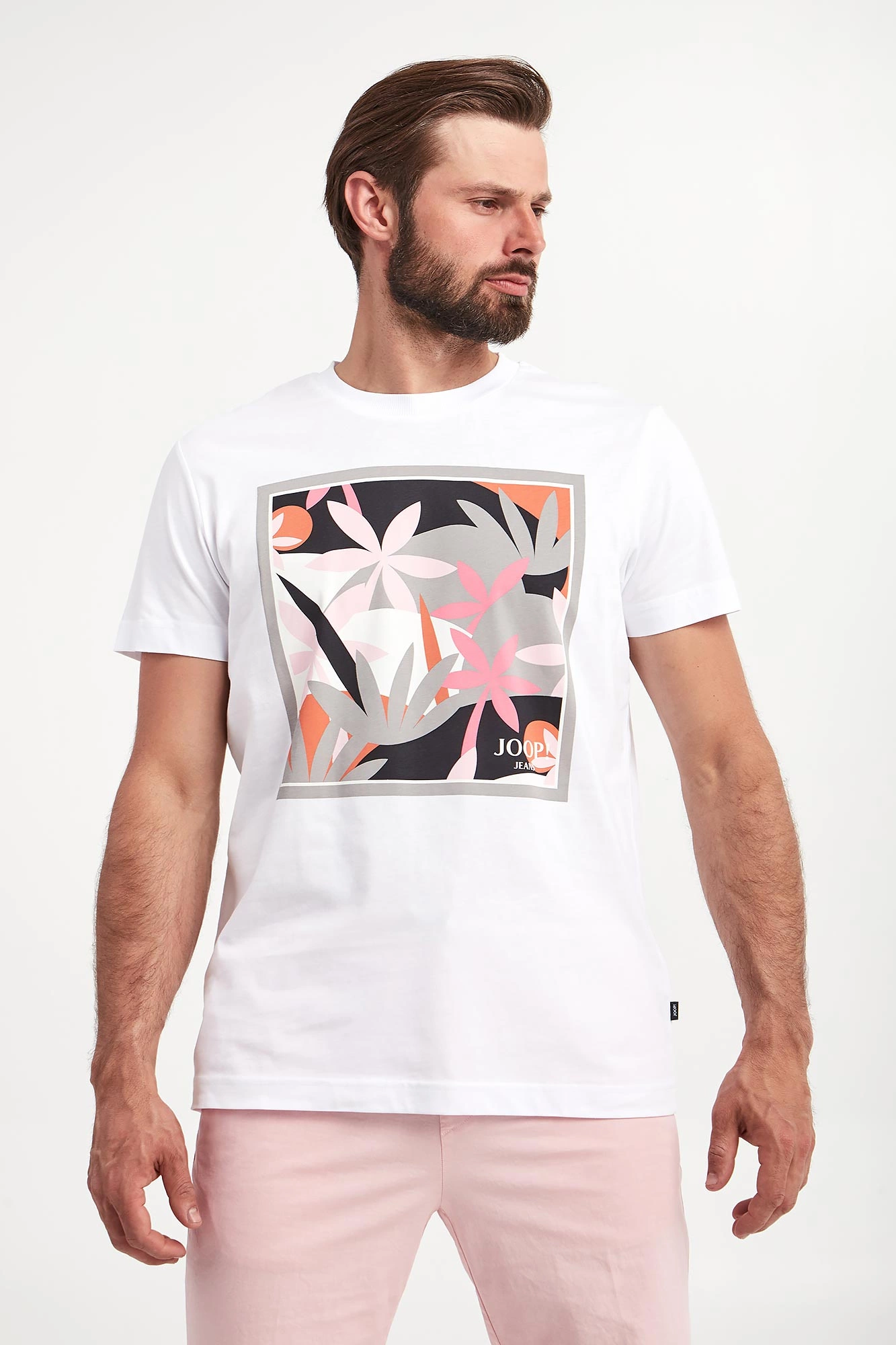 - Duży kwadratowy nadruk z motywem kwiatów.