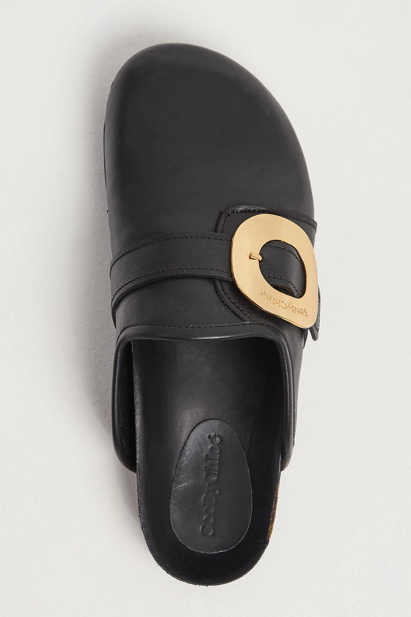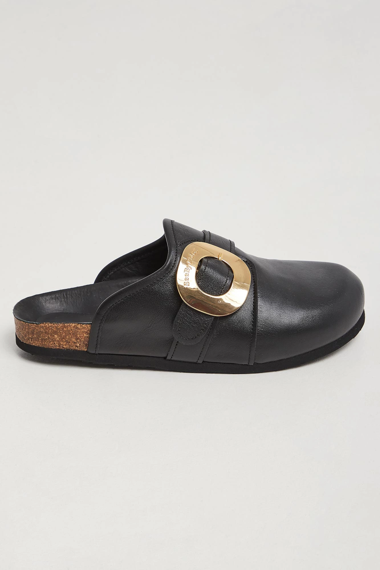 - Pasek z sygnowaną klamrą w złotym kolorze.