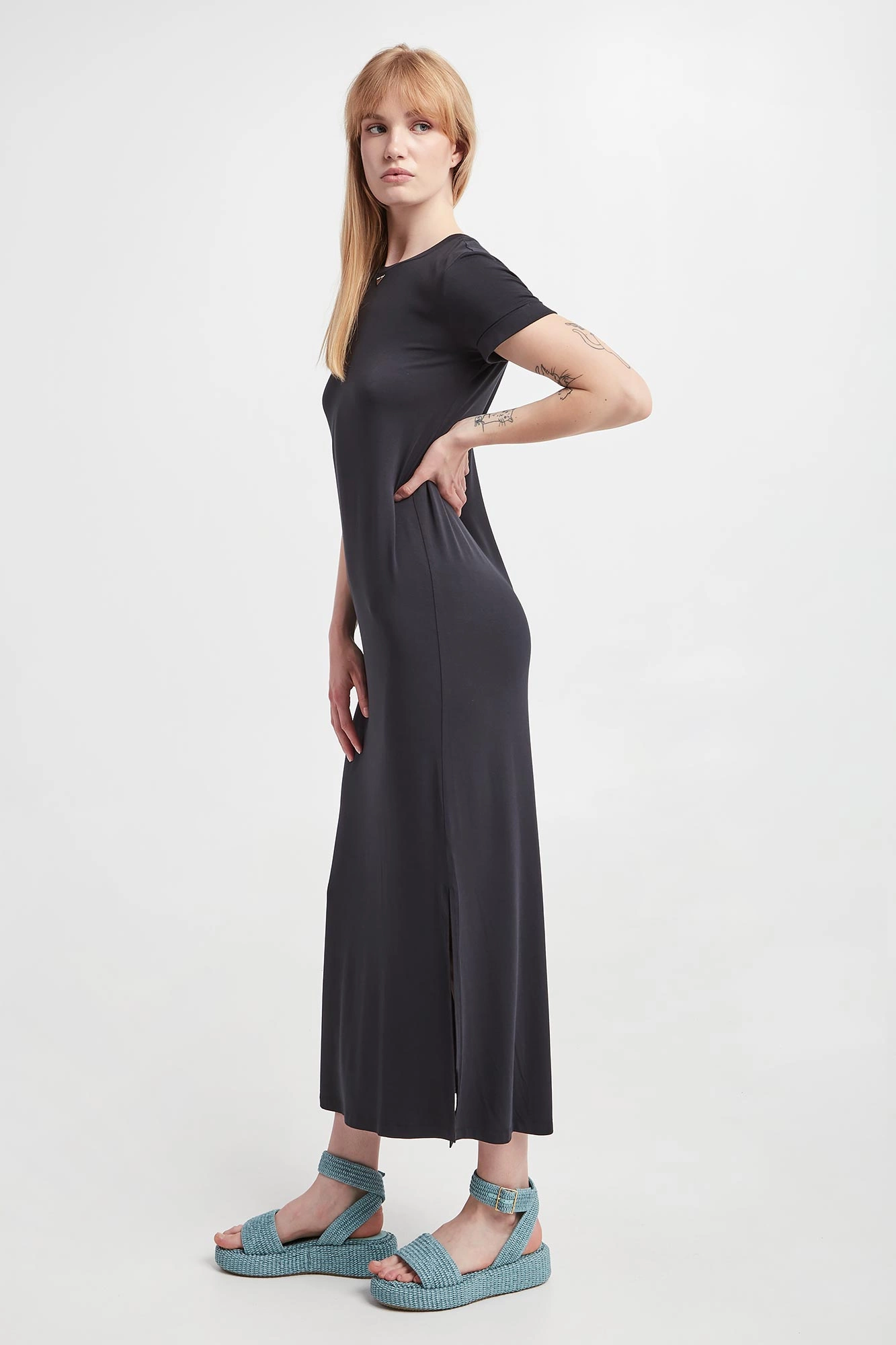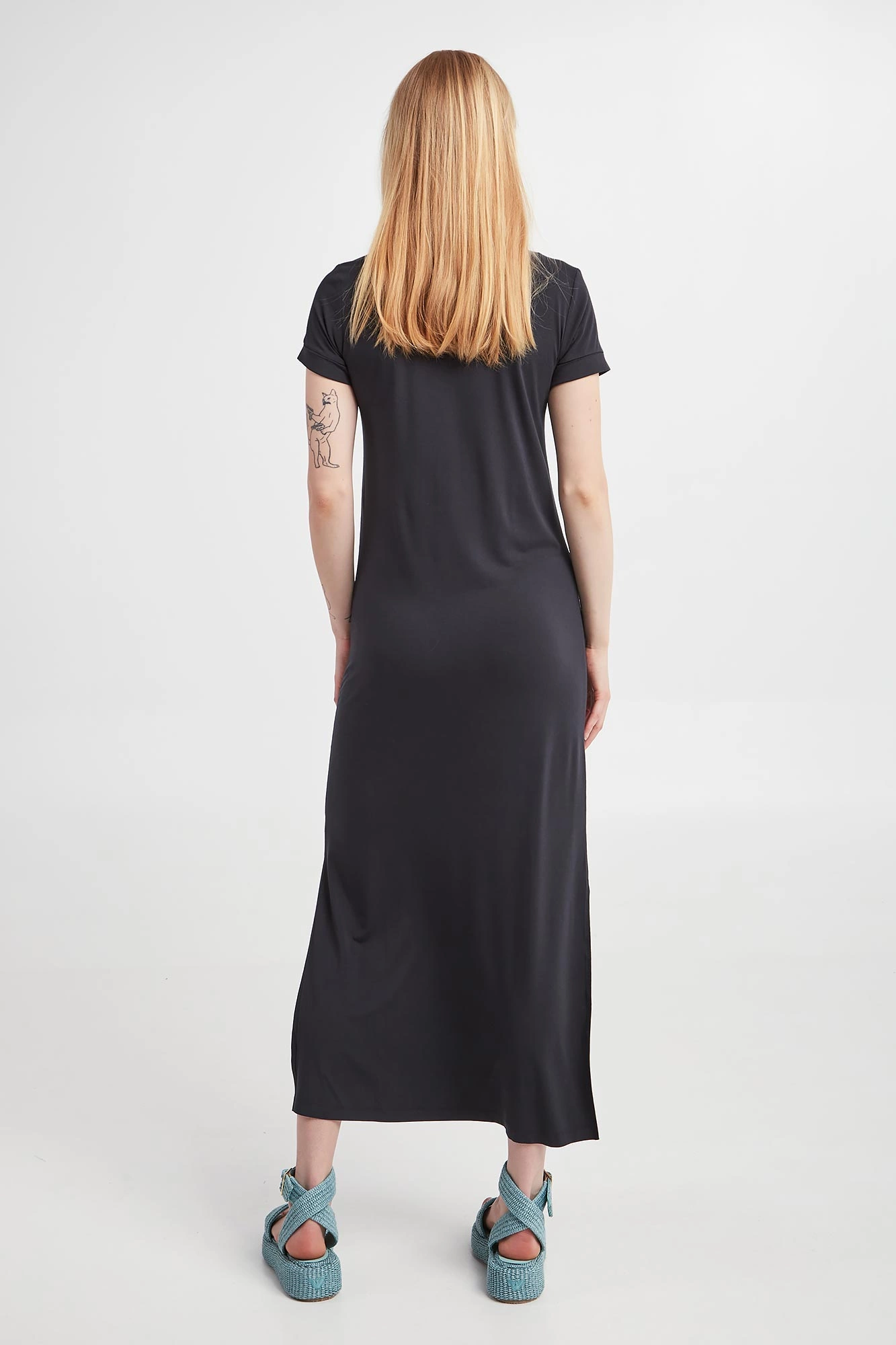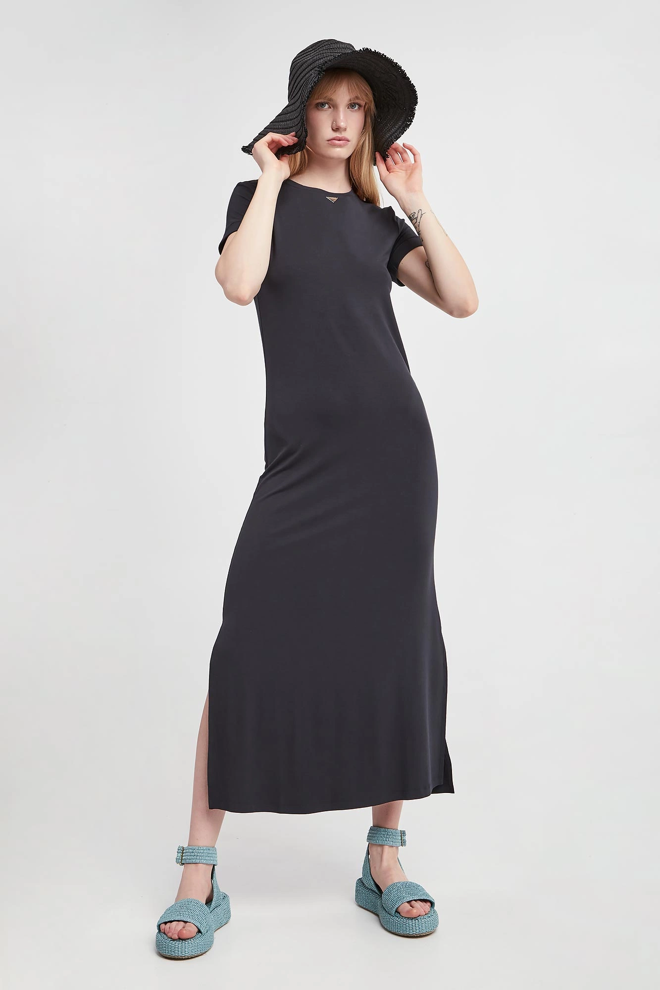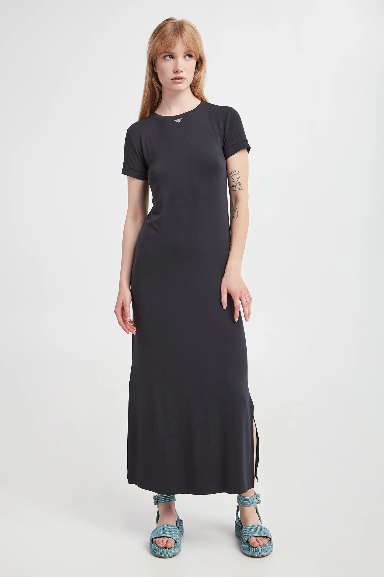 - Przy dekolcie metalowa trójkątna aplikacja z logo.