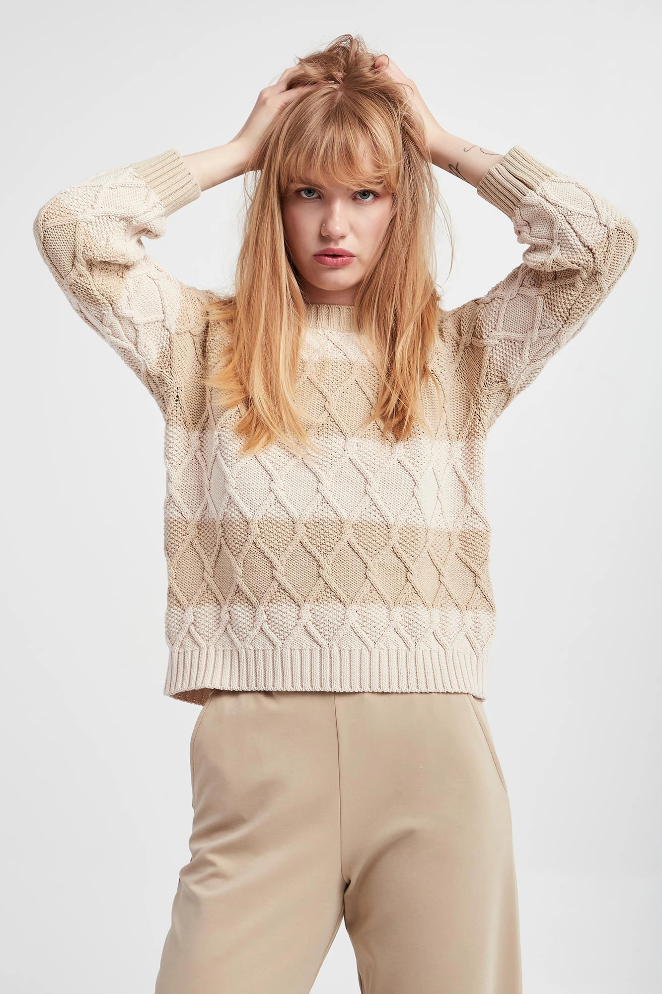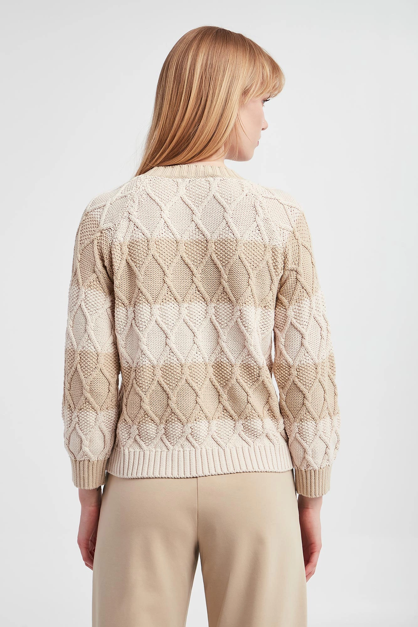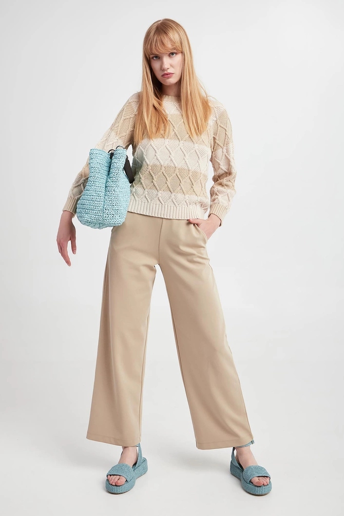 | Faktura: | Warkoczowy splot Dzianina swetrowa |
