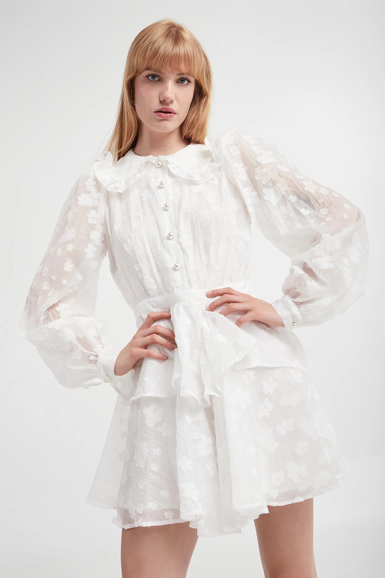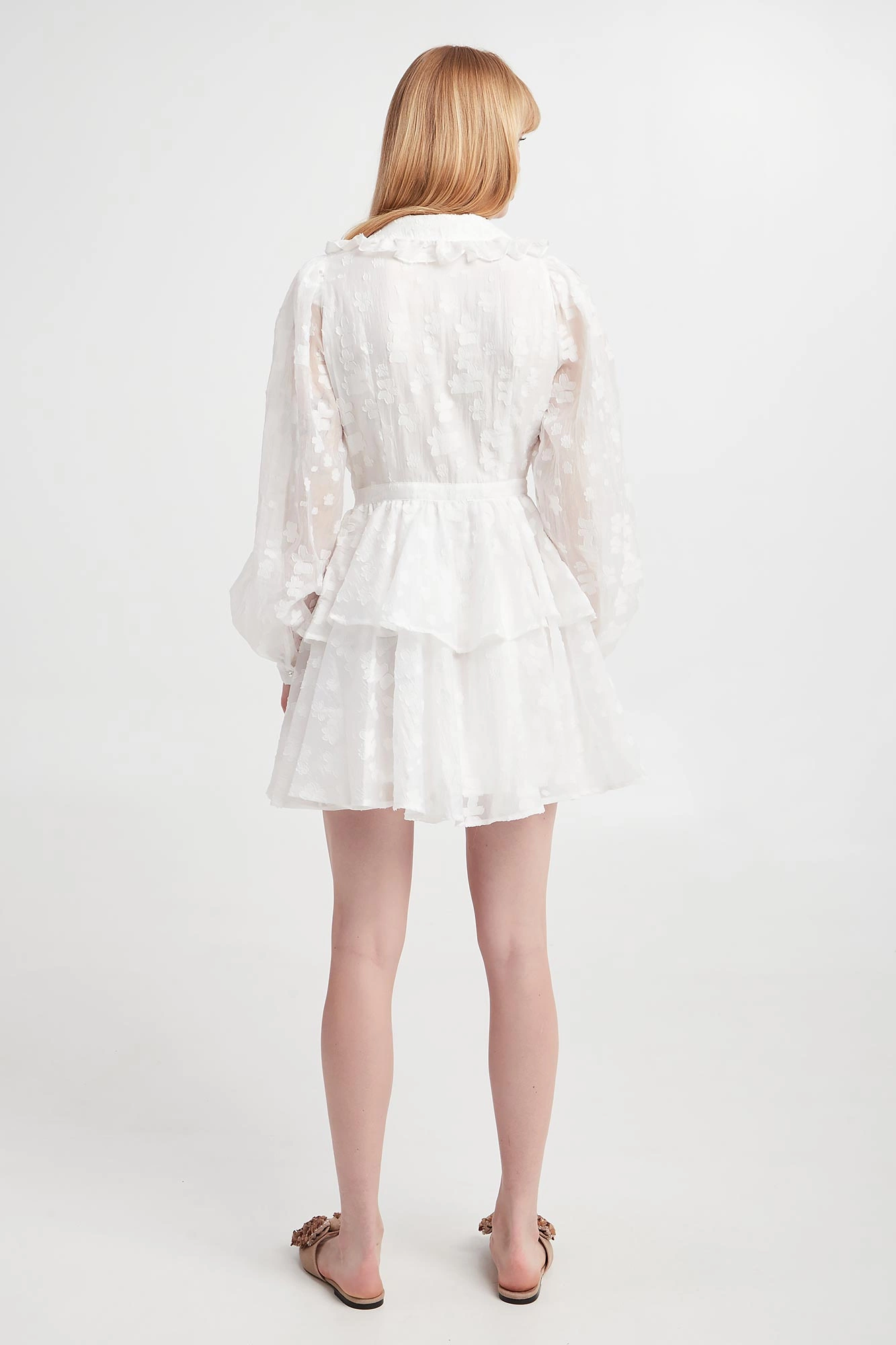 - Półtransparentne, bufiaste rękawy.