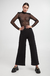 - Logowana, siatkowana tkanina z aksamitnym wzorem.