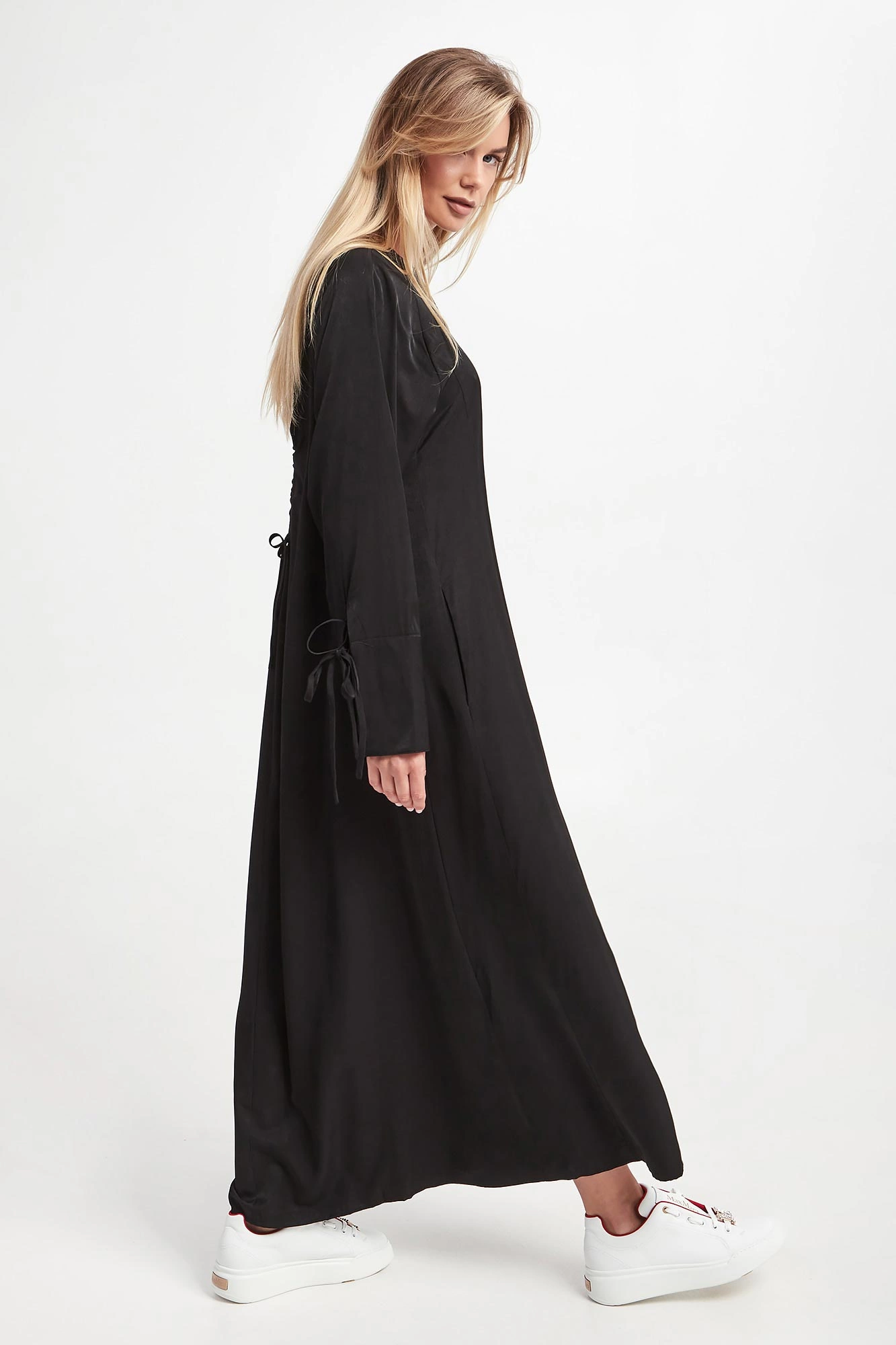 - Na rękawach i z tyłu wiązanie.