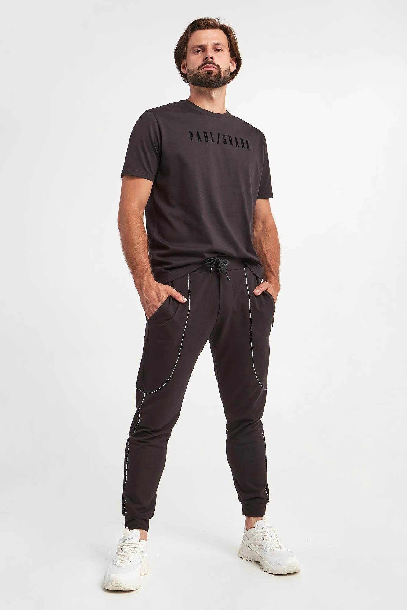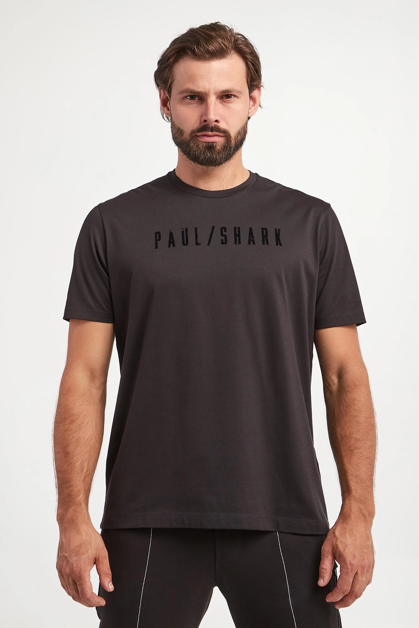 - Flokowany nadruk z logo na piersi i na rękawie.