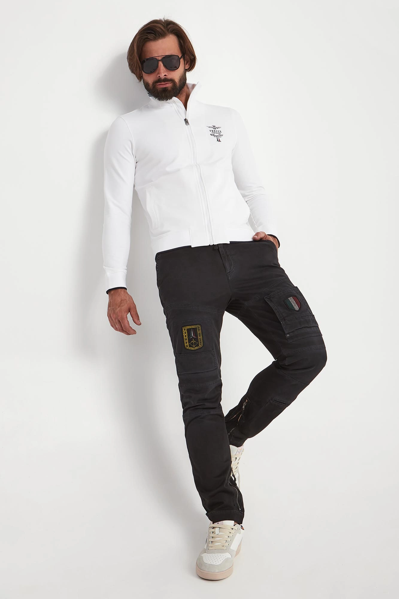 Model na zdjęciu, przy wzroście 184 cm, ma na sobie rozmiar 50.
