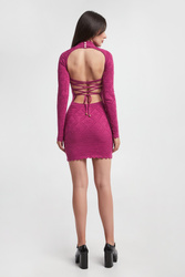 - Na plecach głębokie wycięcie z ozdobnymi troczkami.