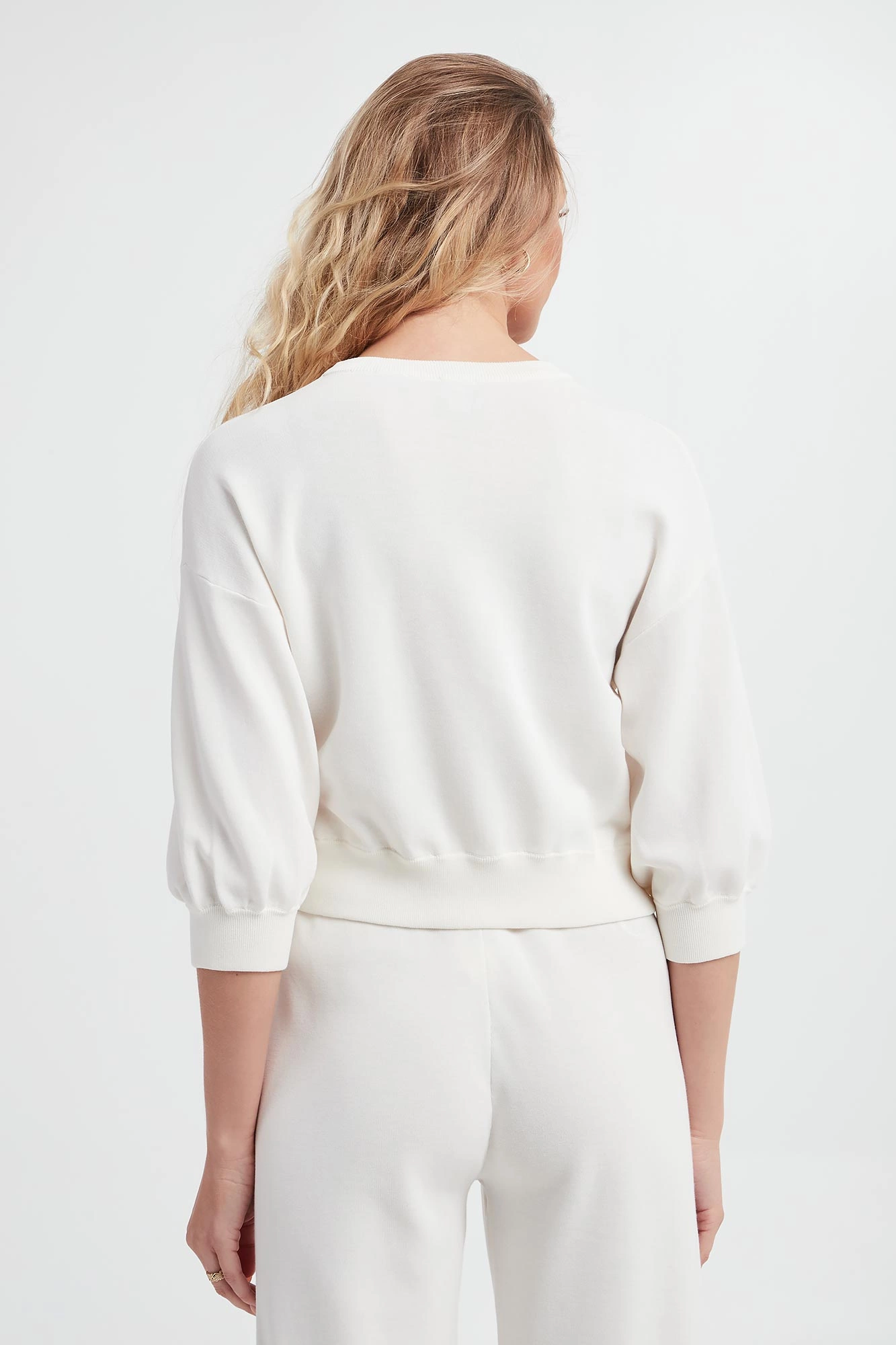 - Dekolt typu o-neck, długie rękawy i dół zakończone prążkowanymi ściągaczami.