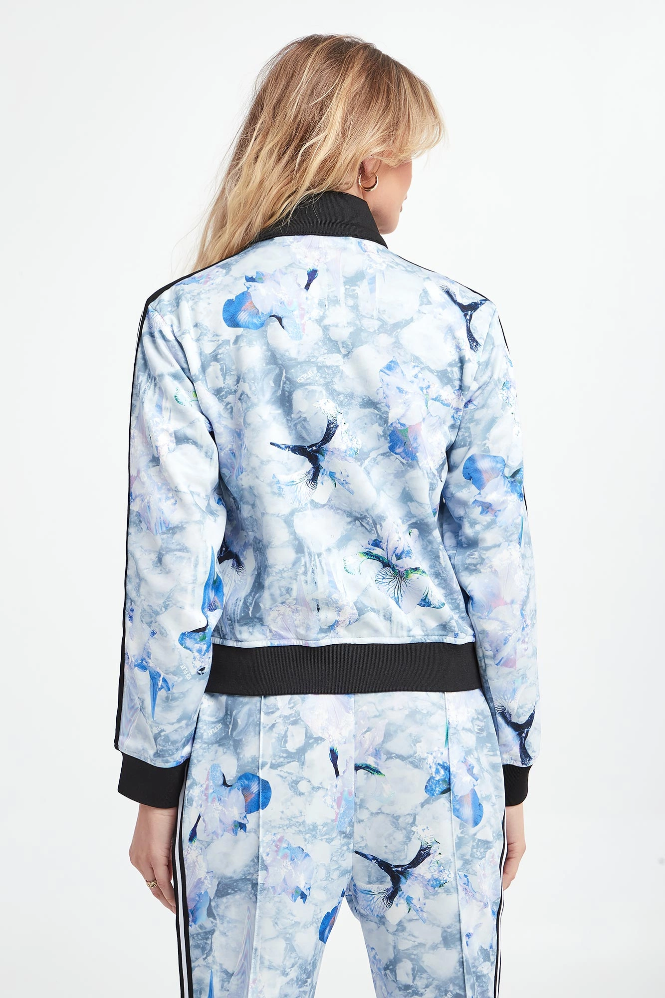 - Nadruk z motywem kwiatów.