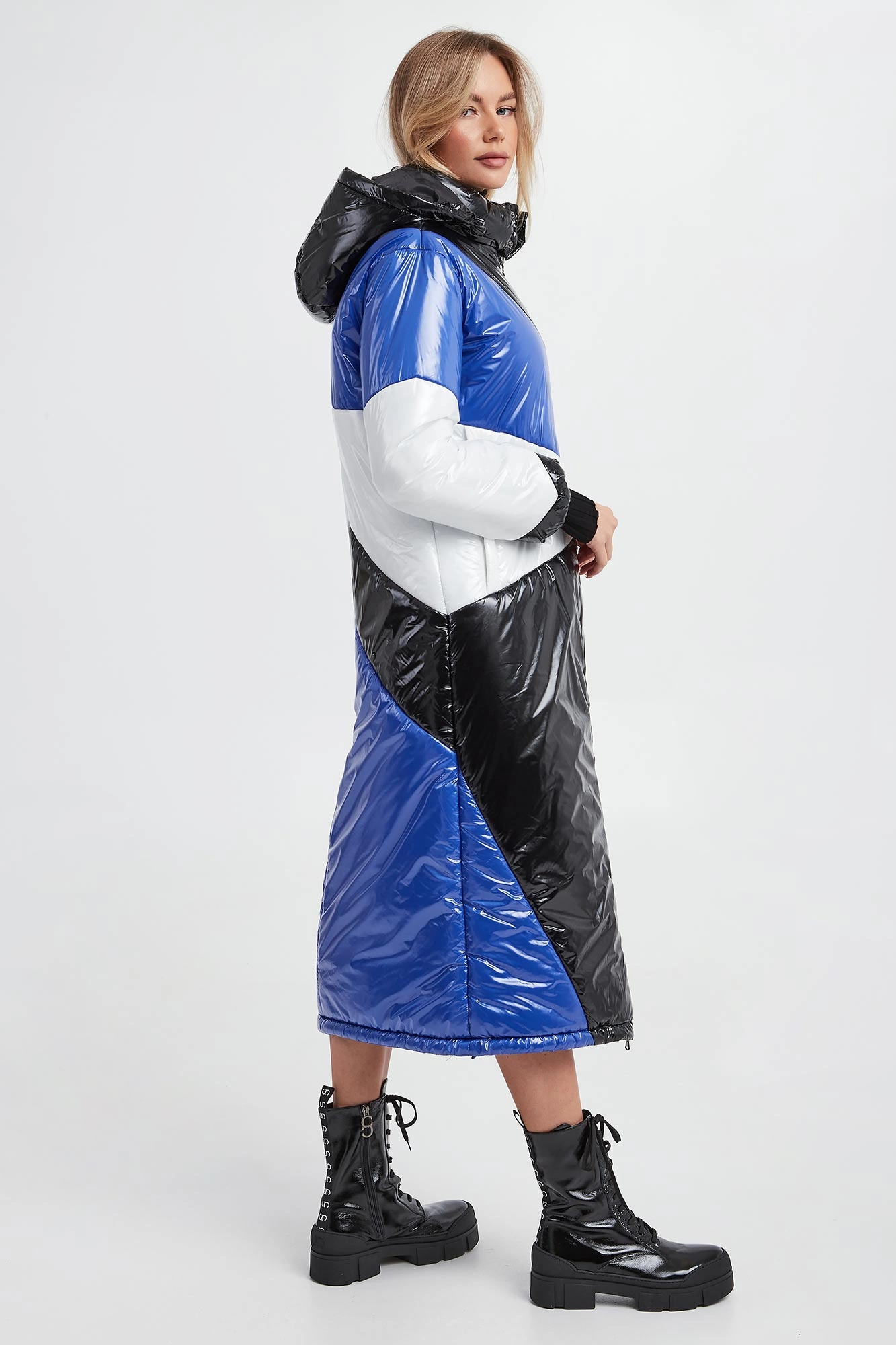 - Kolor czarno-biało-niebieski.