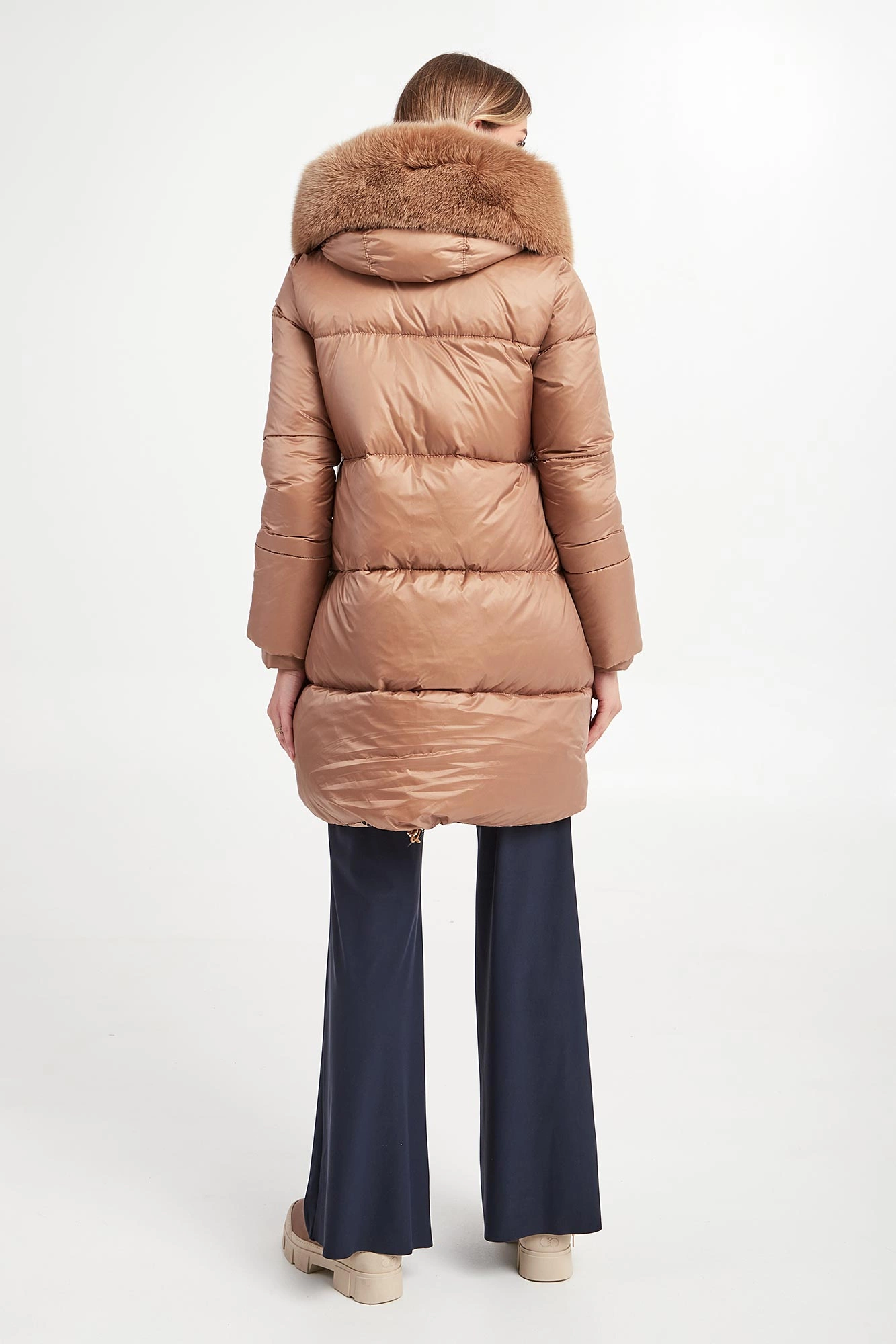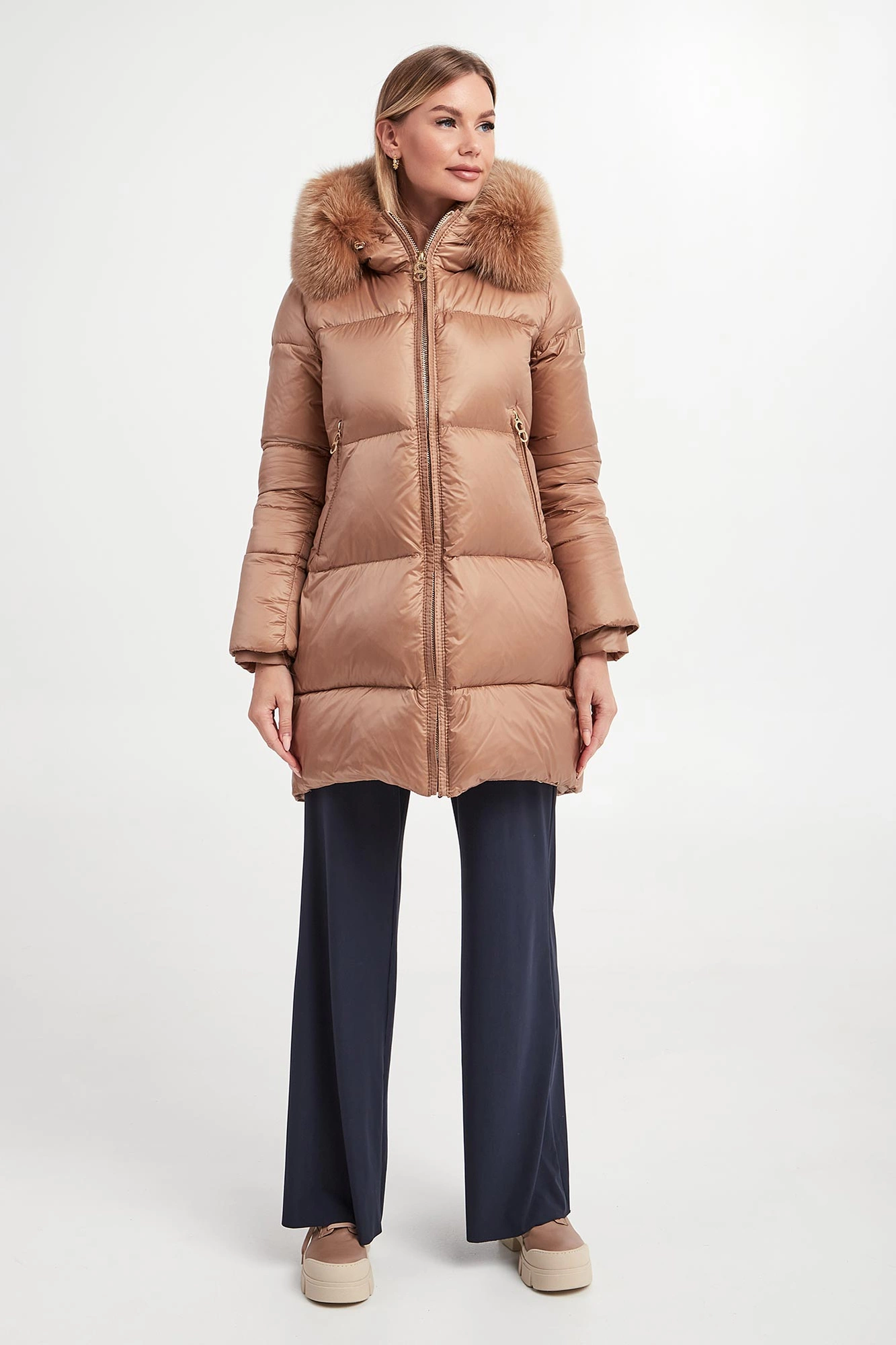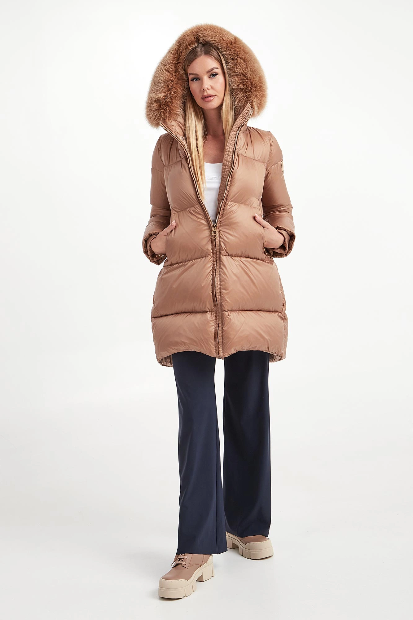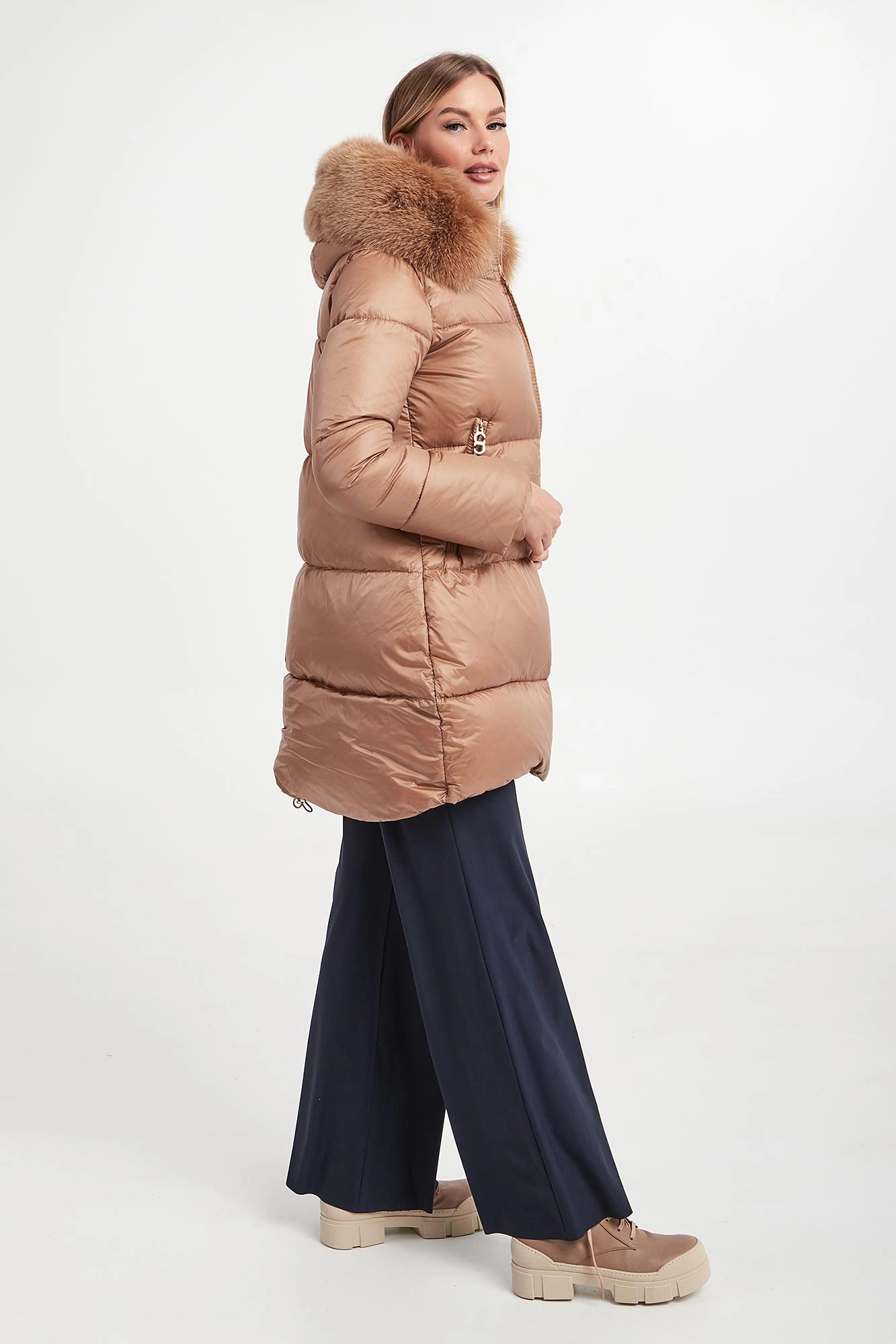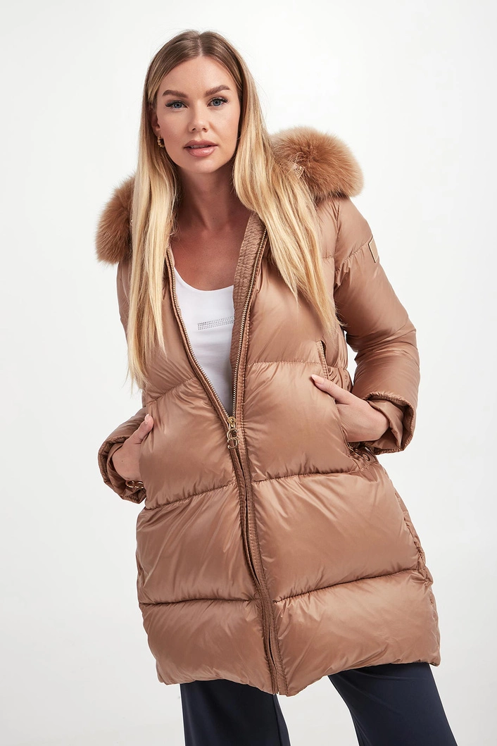 - Odpinane futro przy regulowanym kapturze.