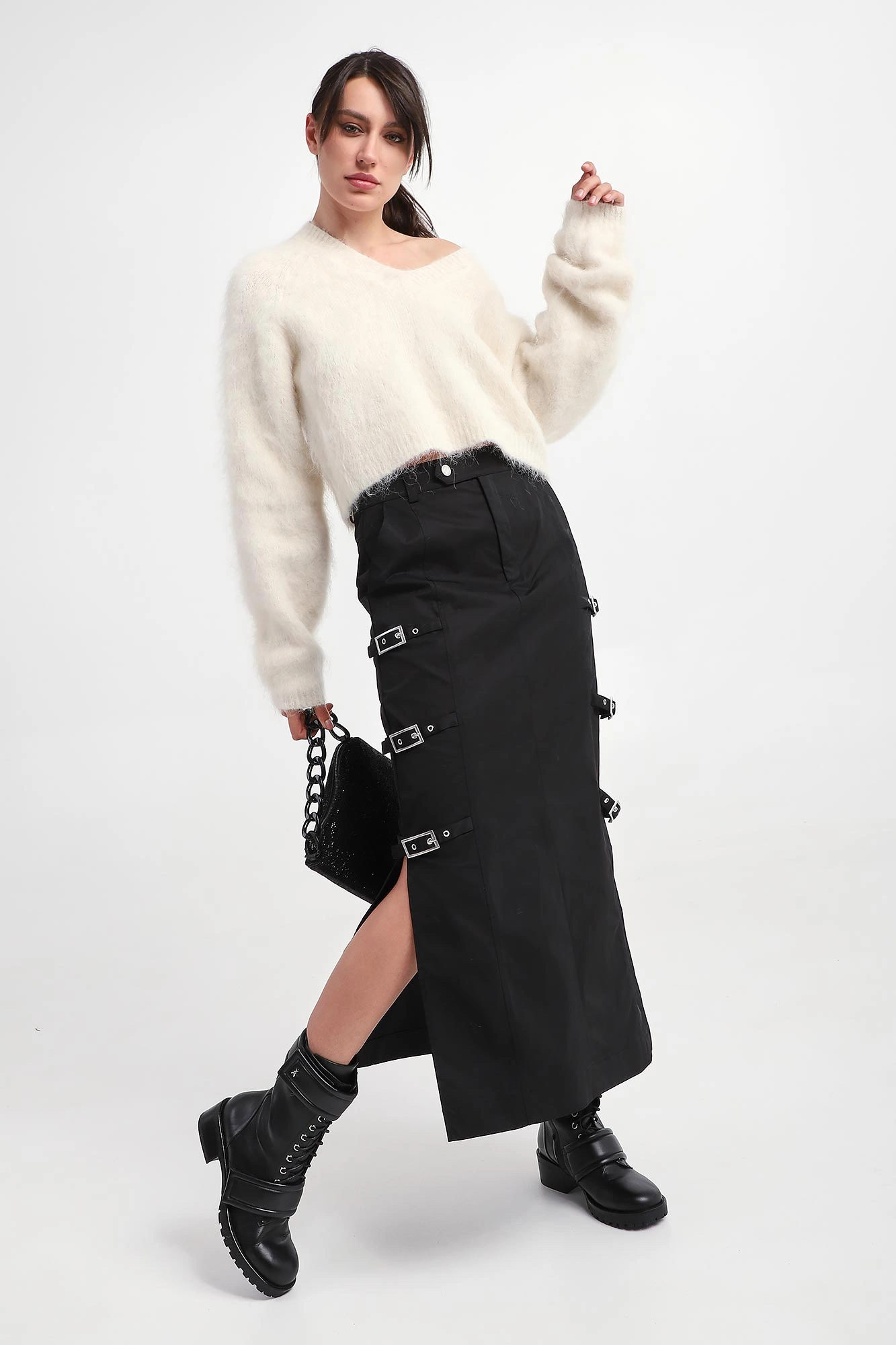 Modelka na zdjęciu, przy wzroście 177 cm, ma na sobie rozmiar 34.