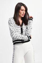 - Na całości czarny wzór z logo przeszyty połyskującą nicią.