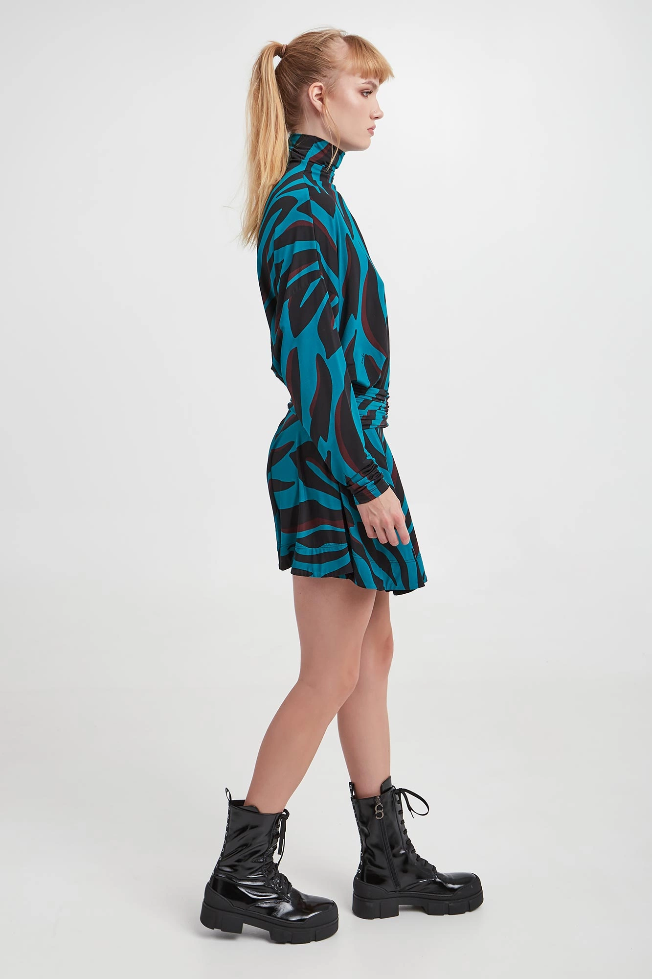 - Taśma tworząca efekt paska, lekko marszczona, osadzona nisko w talii.