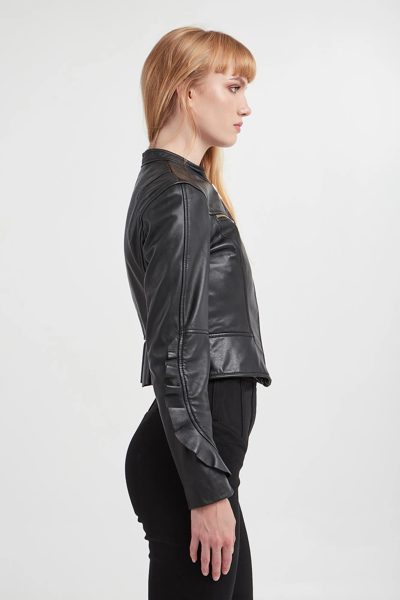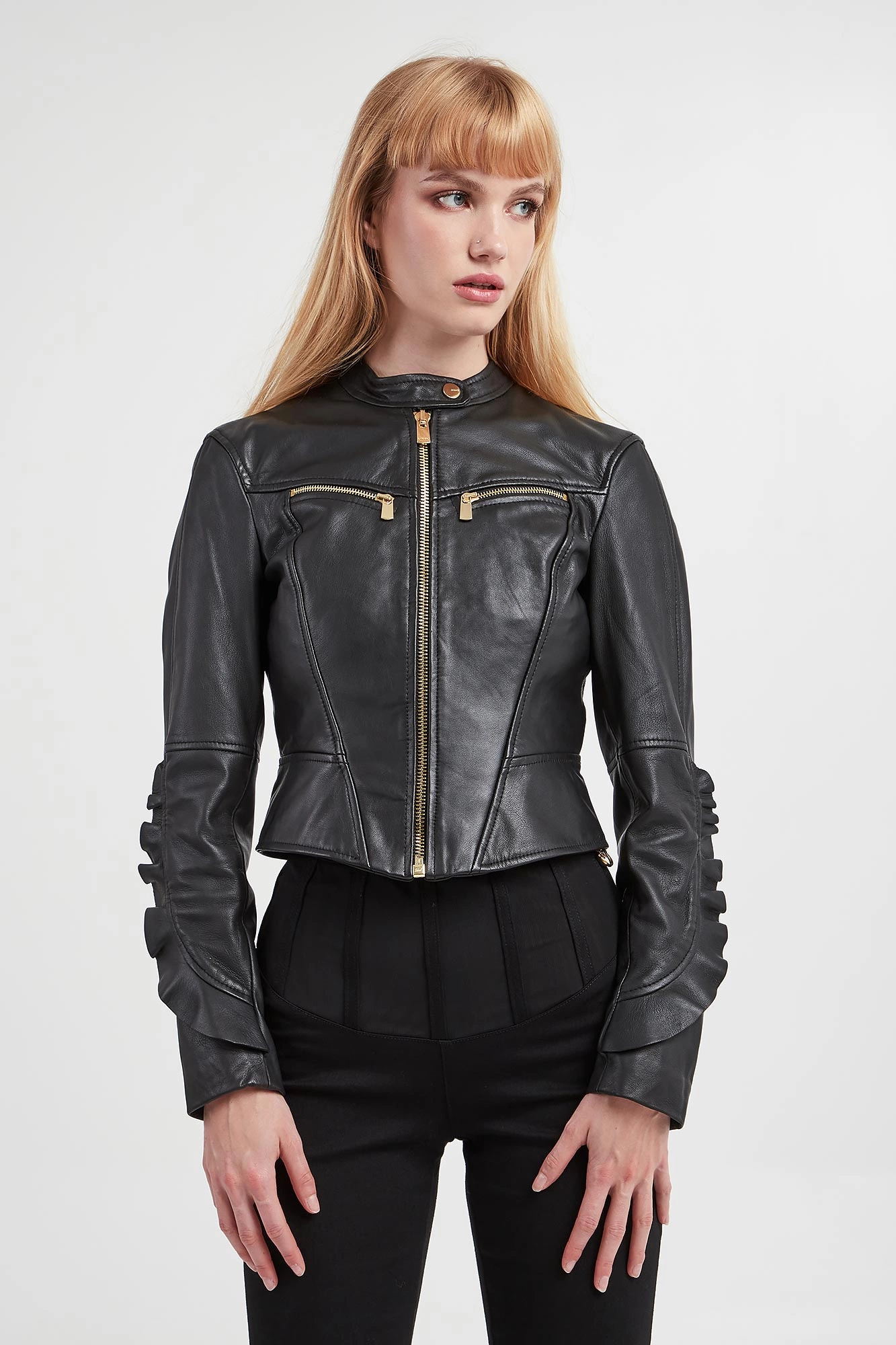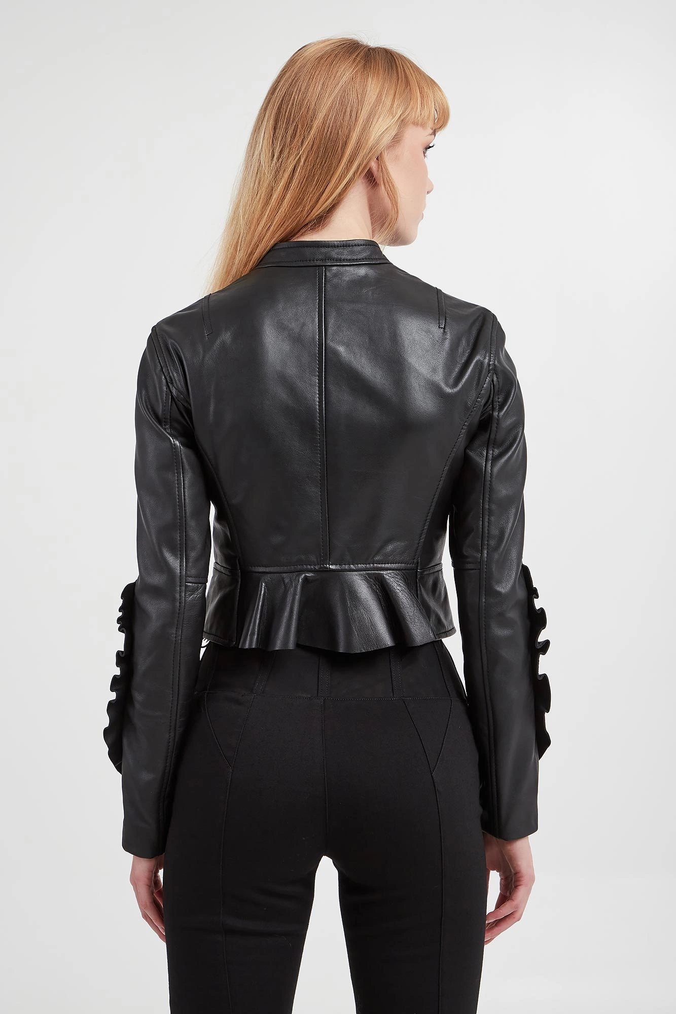 - Długie rękawy wykończone falbanami.