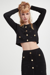 - Wykonany z żakardowej dzianiny wiskozowej typu pika.