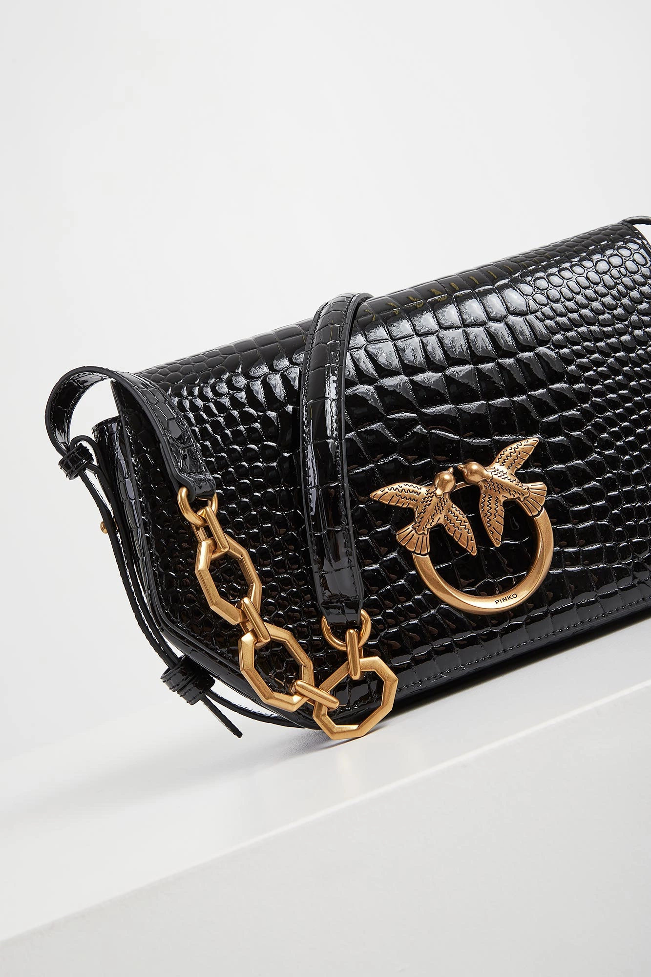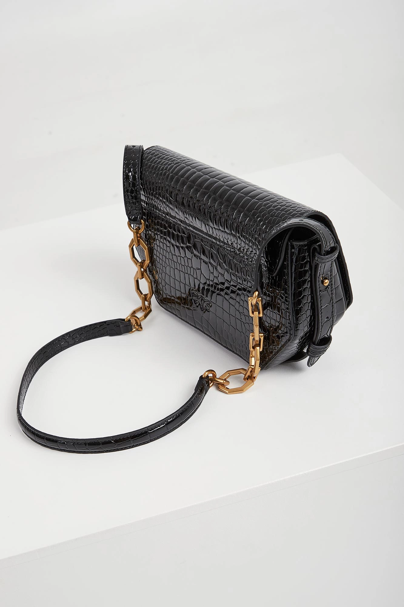 - Wykonana ze skóry z wzorem krokodyla o błyszczącym wykończeniu.