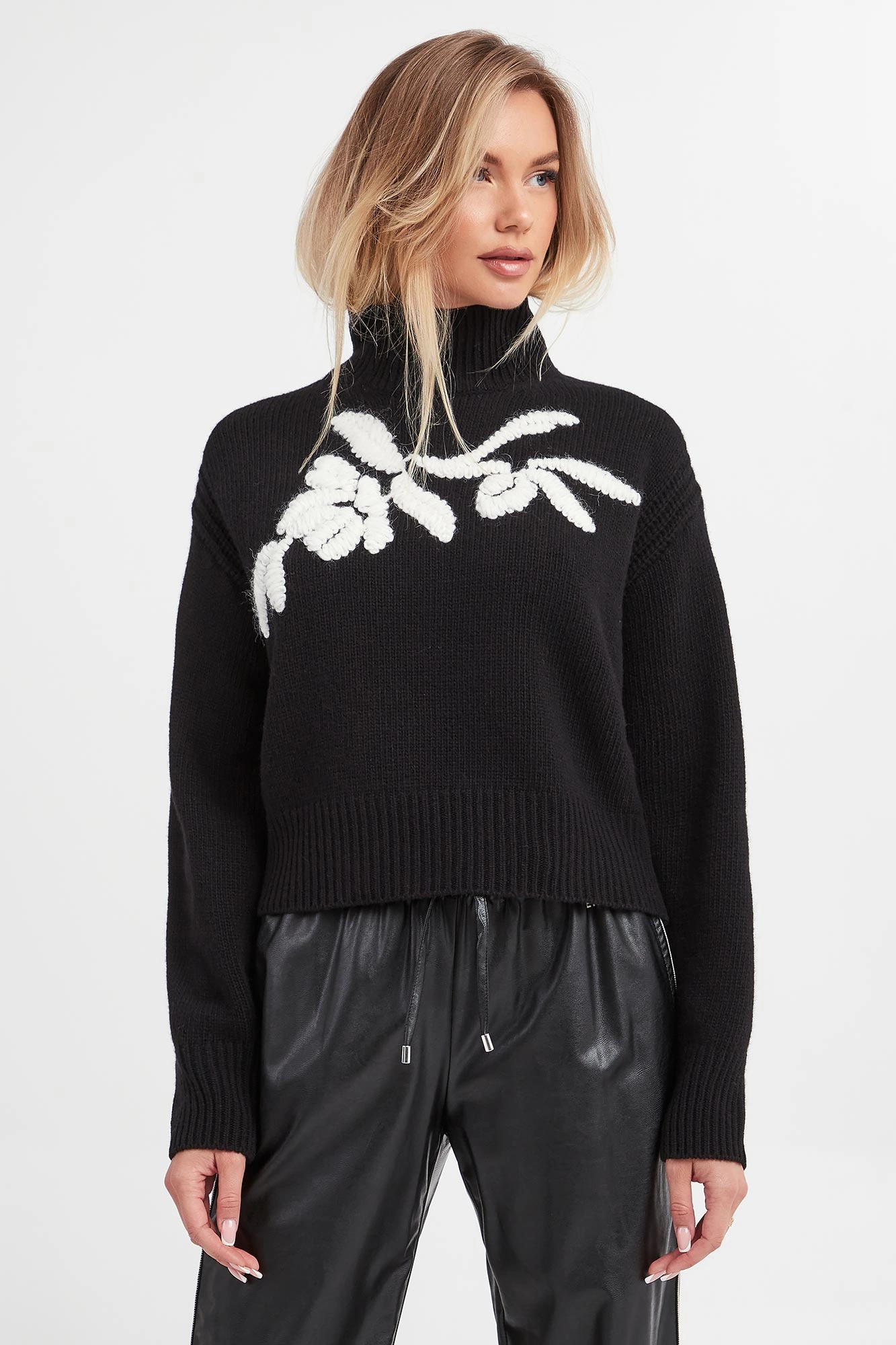 - Na przodzie kontrastowy haft z efektem 3D.