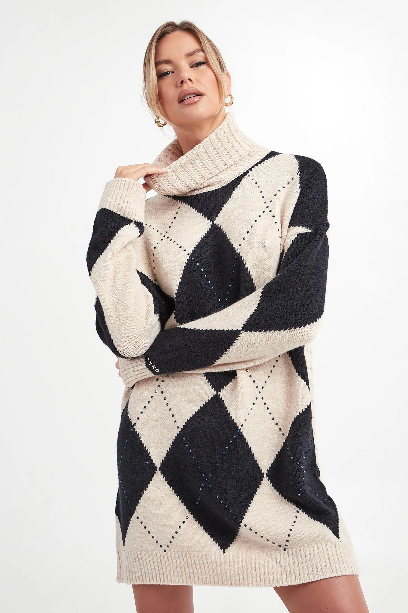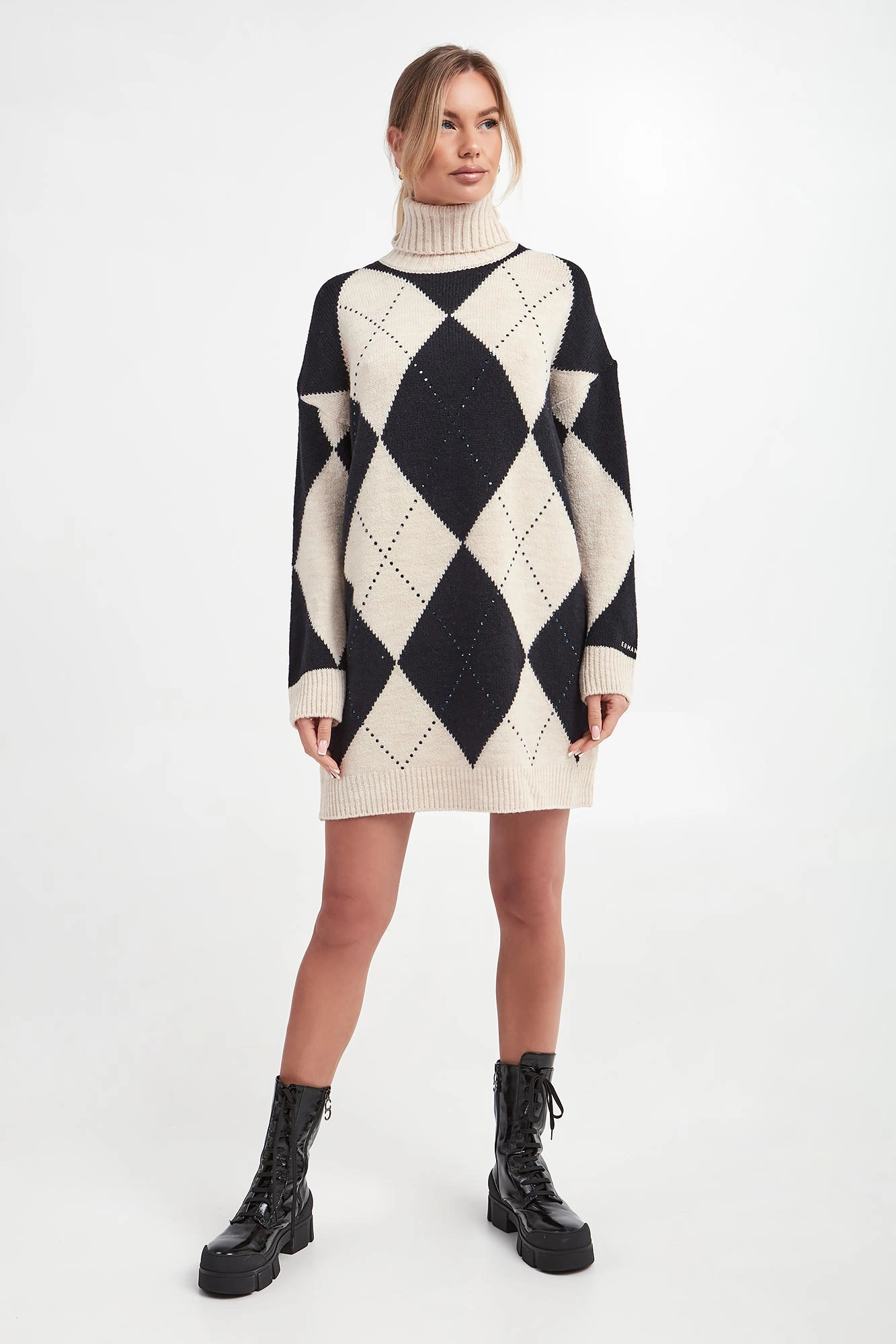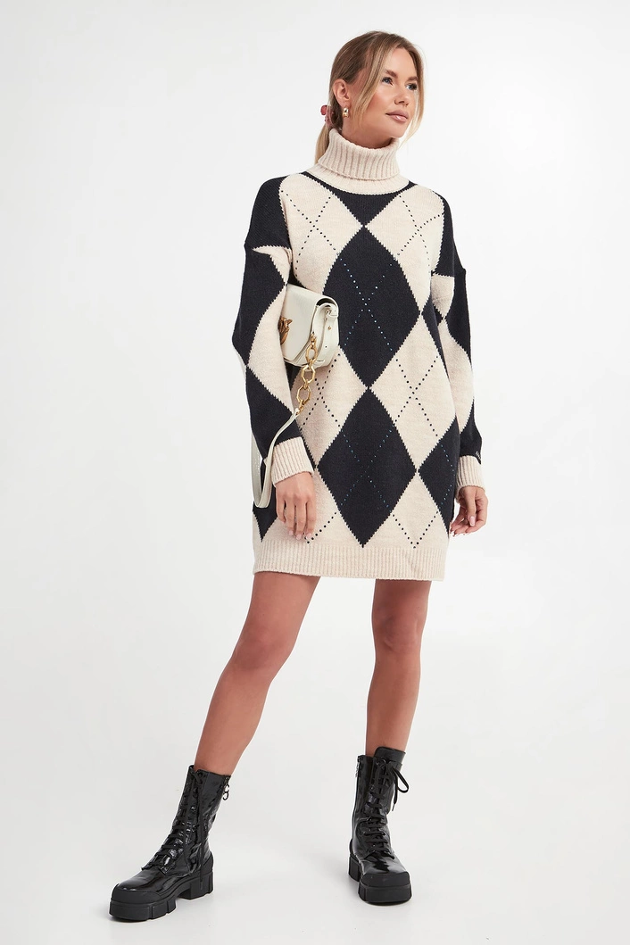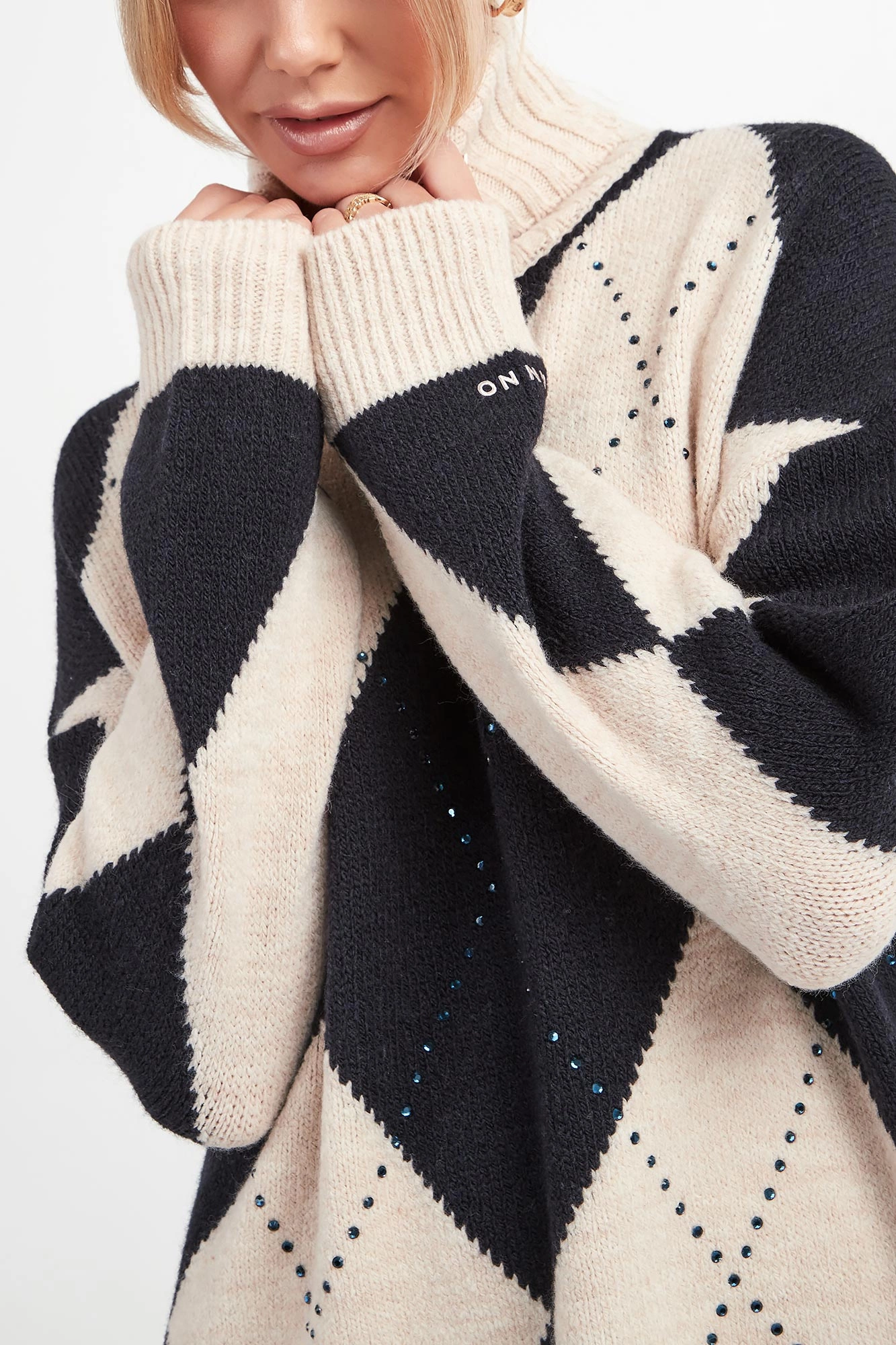- Z przodu kontrastowy wzór argyle w granatowym kolorze.
