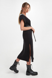 - Dekolt v-neck zakończony ściągaczem w paski.