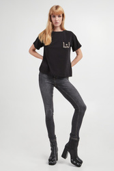 - Kieszeń na piersi wykończona ćwiekami tworzącymi logo.
