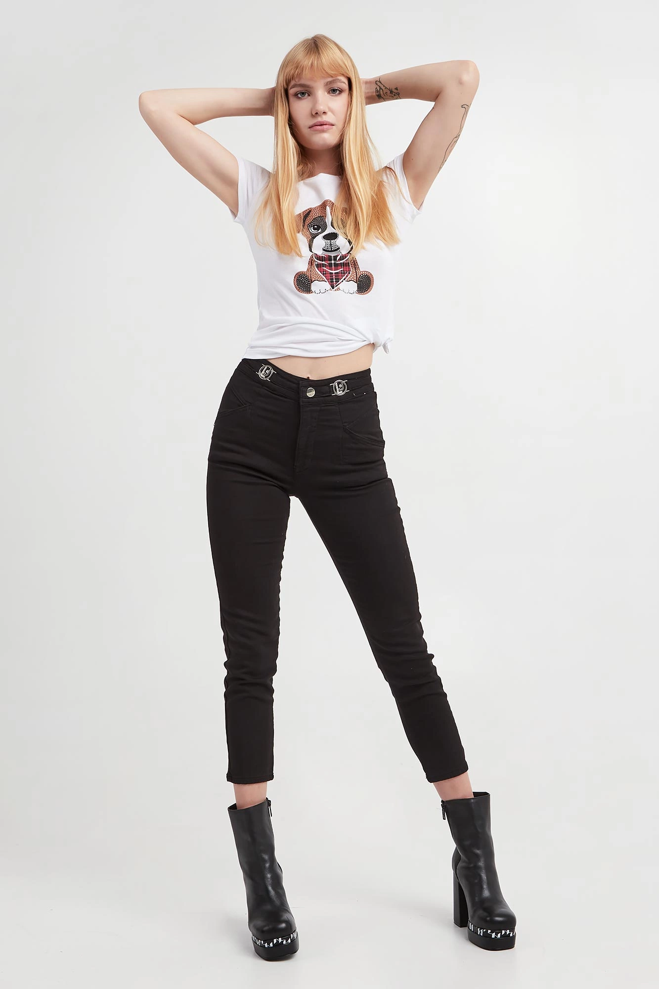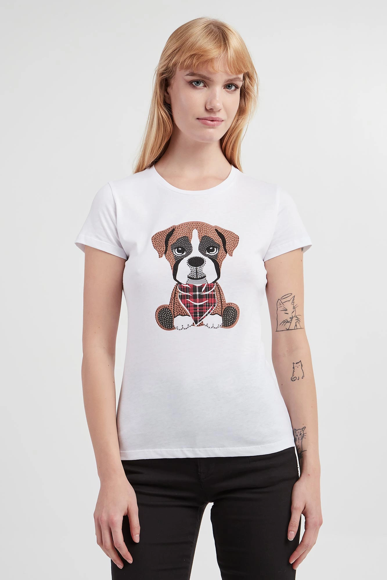 - Na froncie nadruk z motywem psa ozdobiony kryształkami.