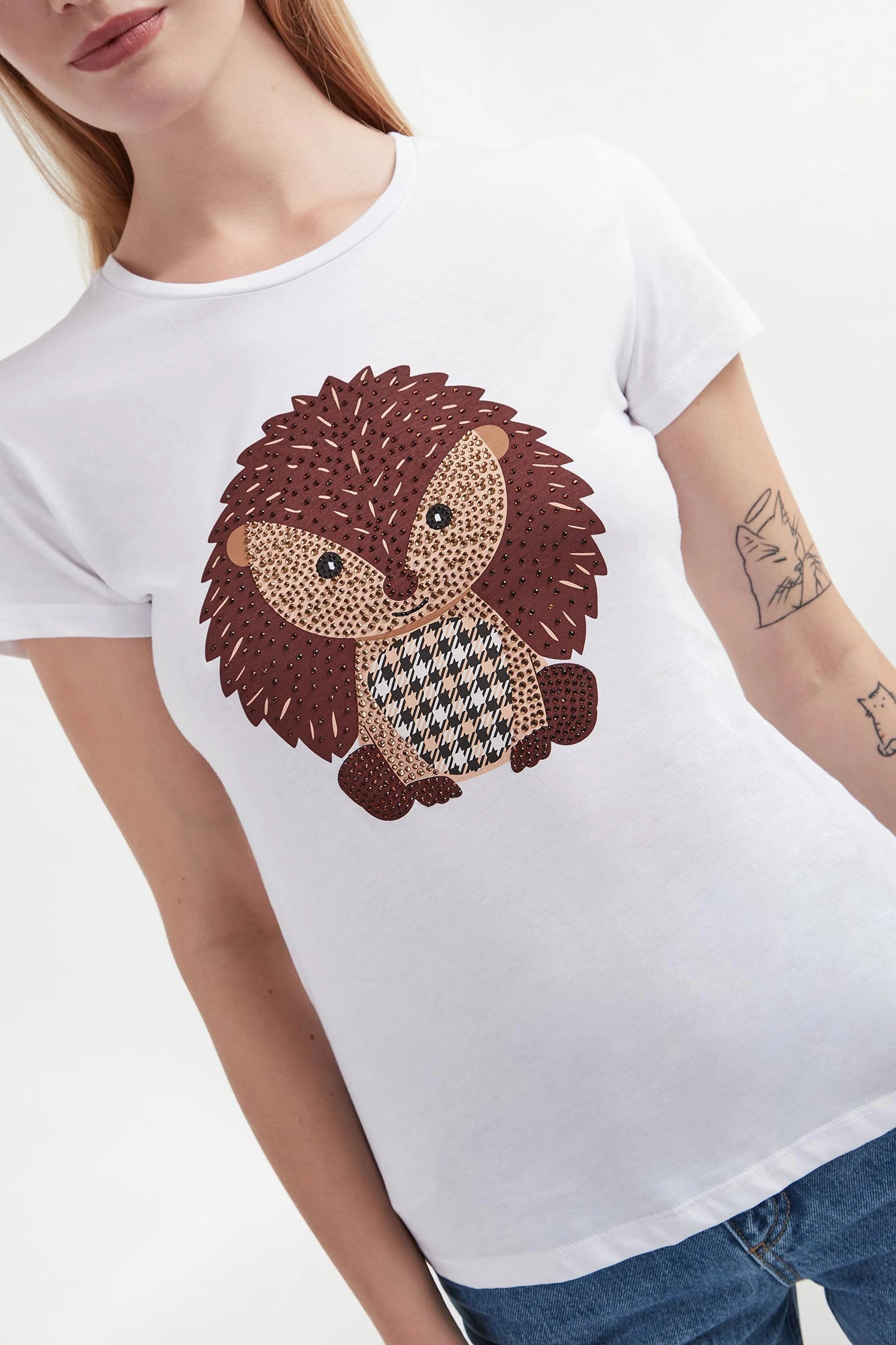 - Na froncie nadruk z motywem jeża ozdobiony kryształkami.