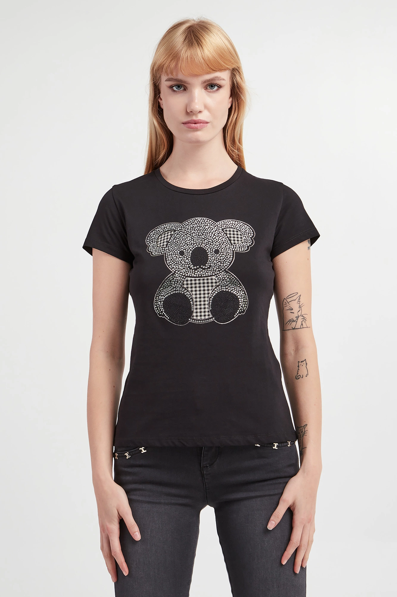 - Na froncie nadruk z motywem koali ozdobiony kryształkami.