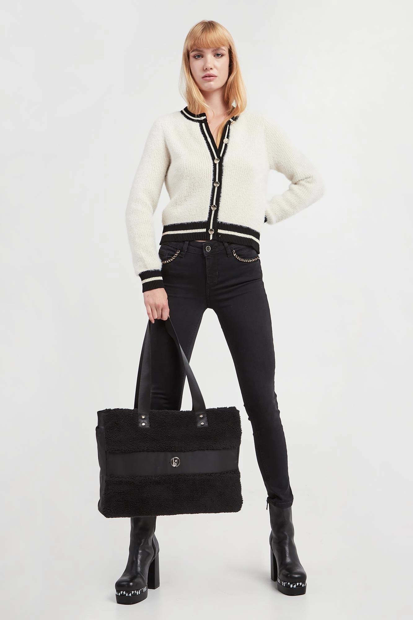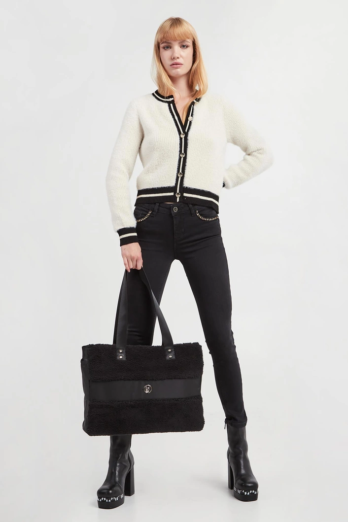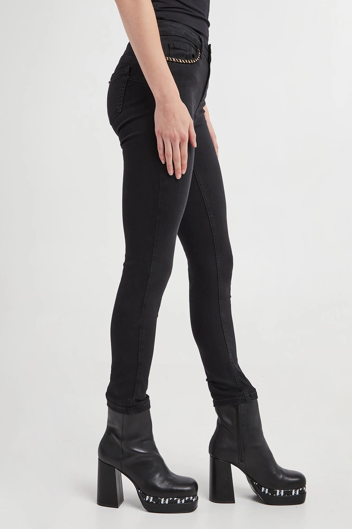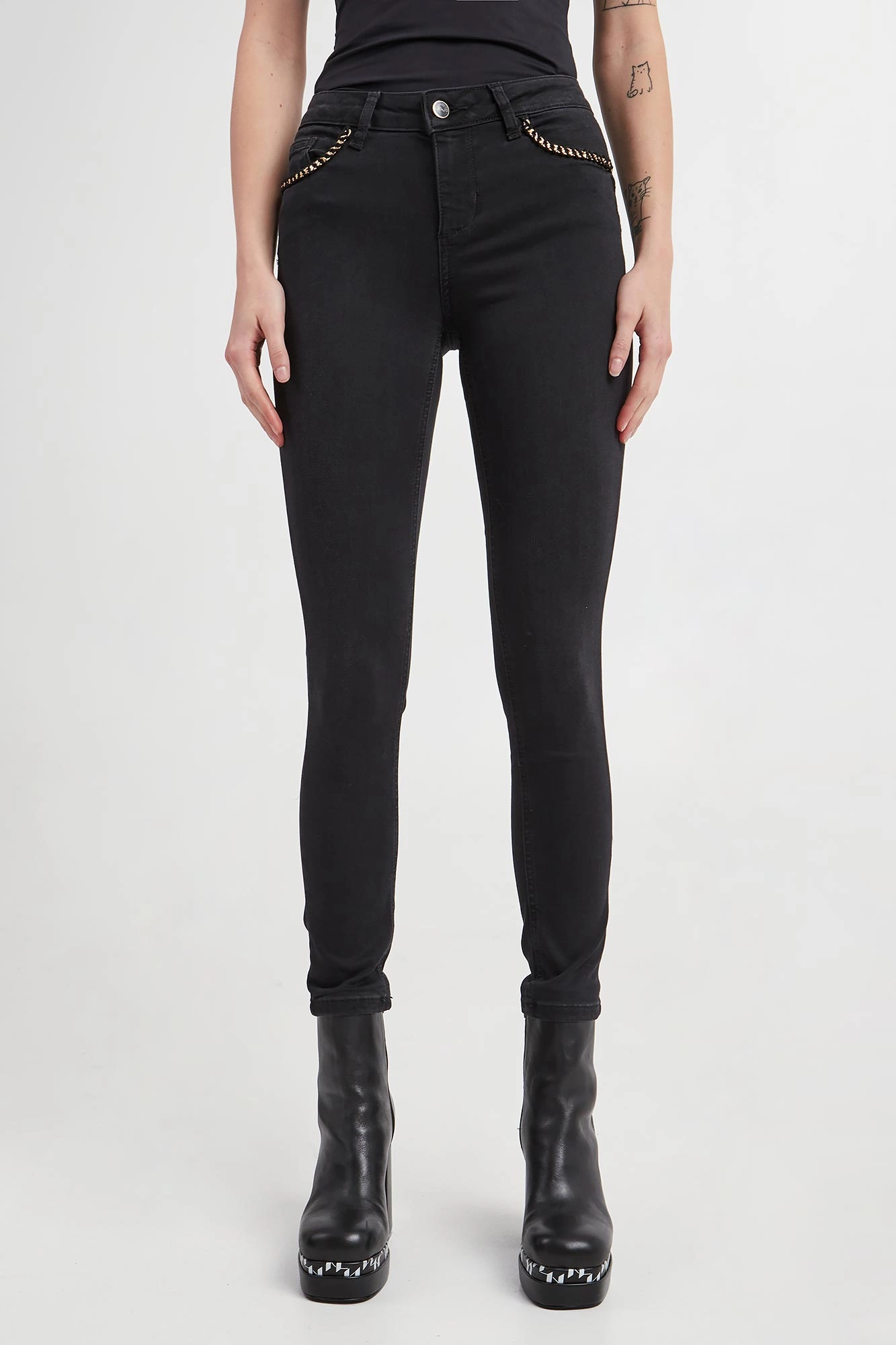 - Kieszenie ozdobione złotym łańcuszkiem.
