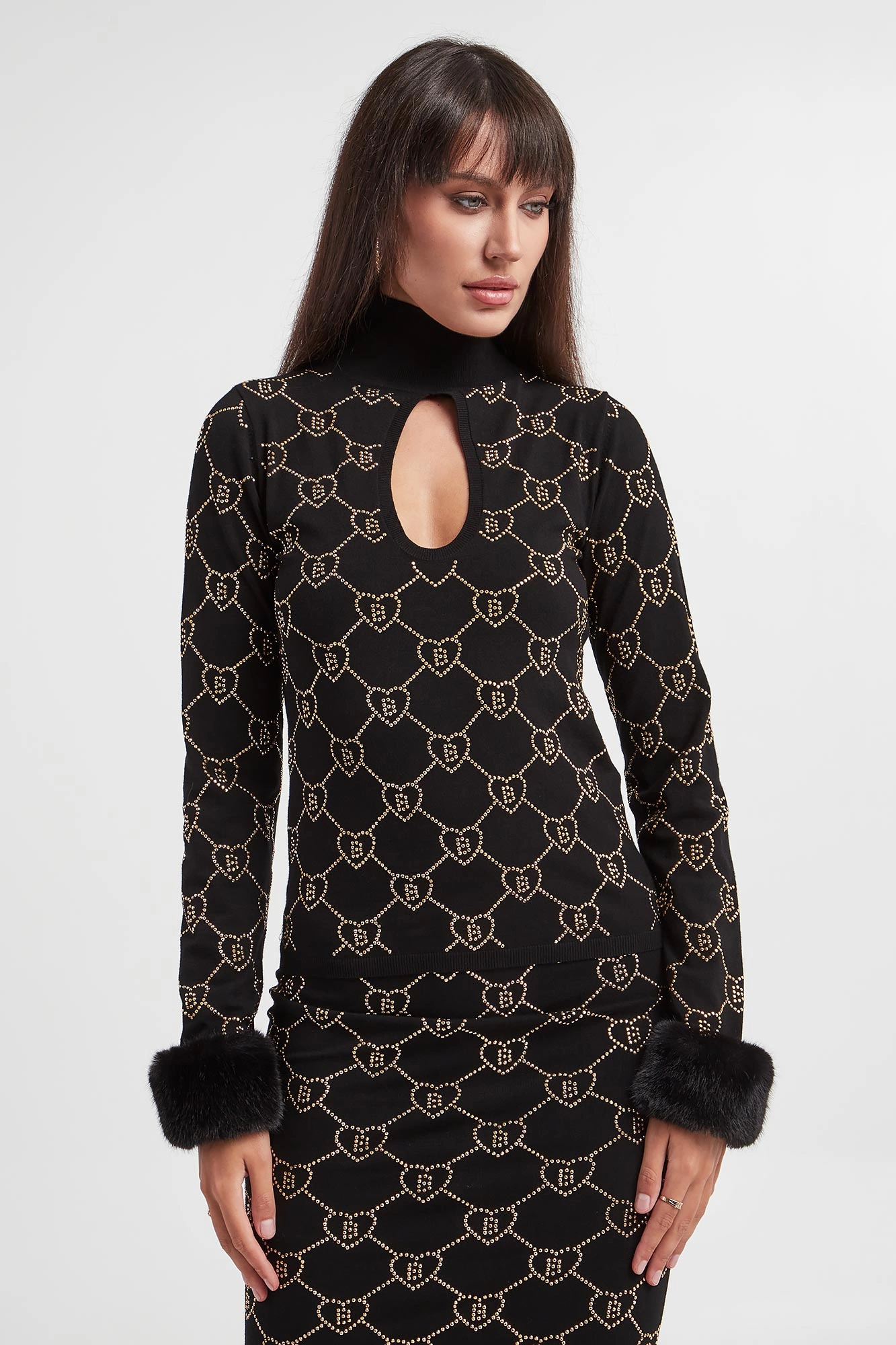 - Front ozdobiony monogramami marki wykonanymi ze złotych kryształków.