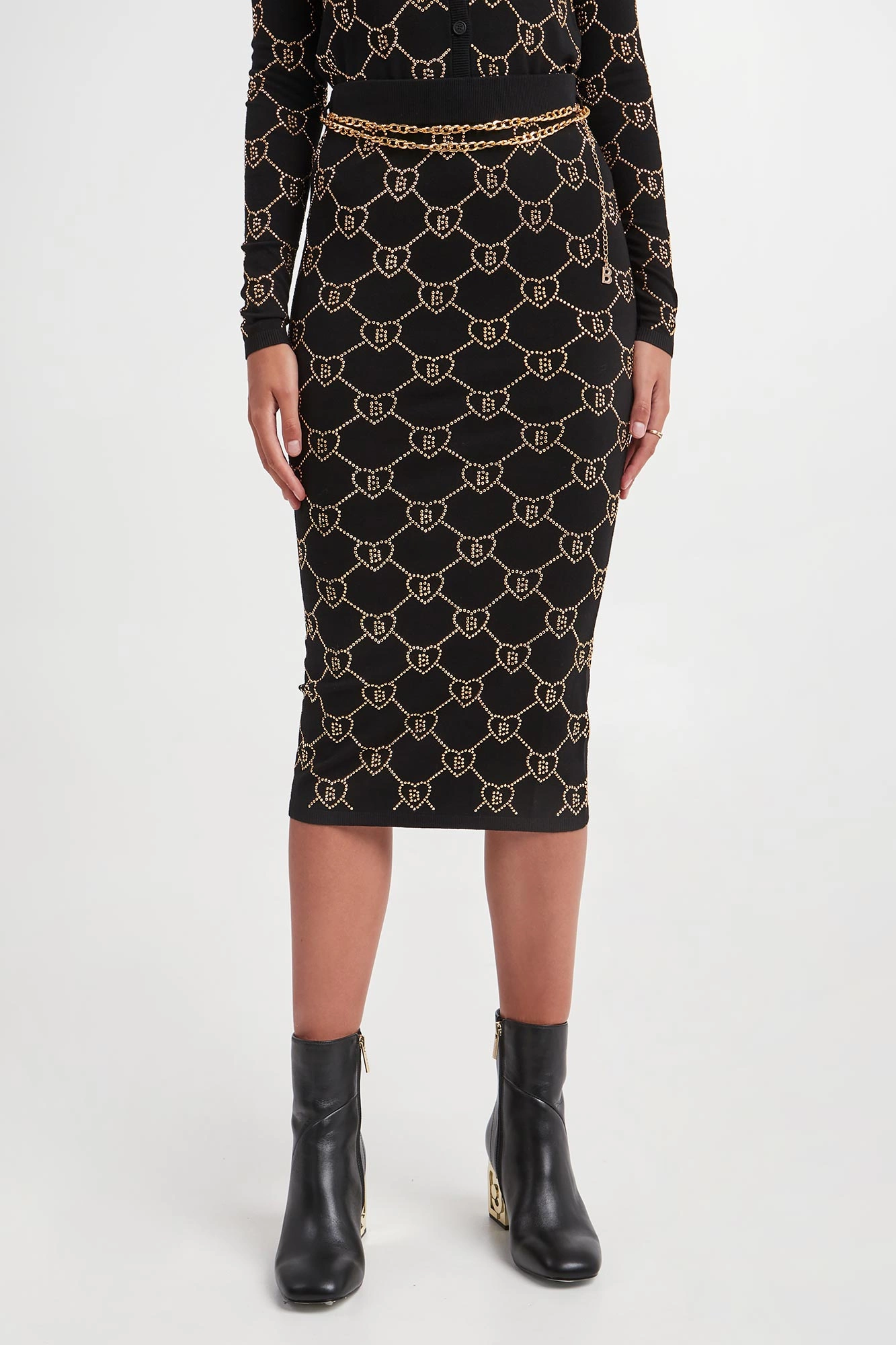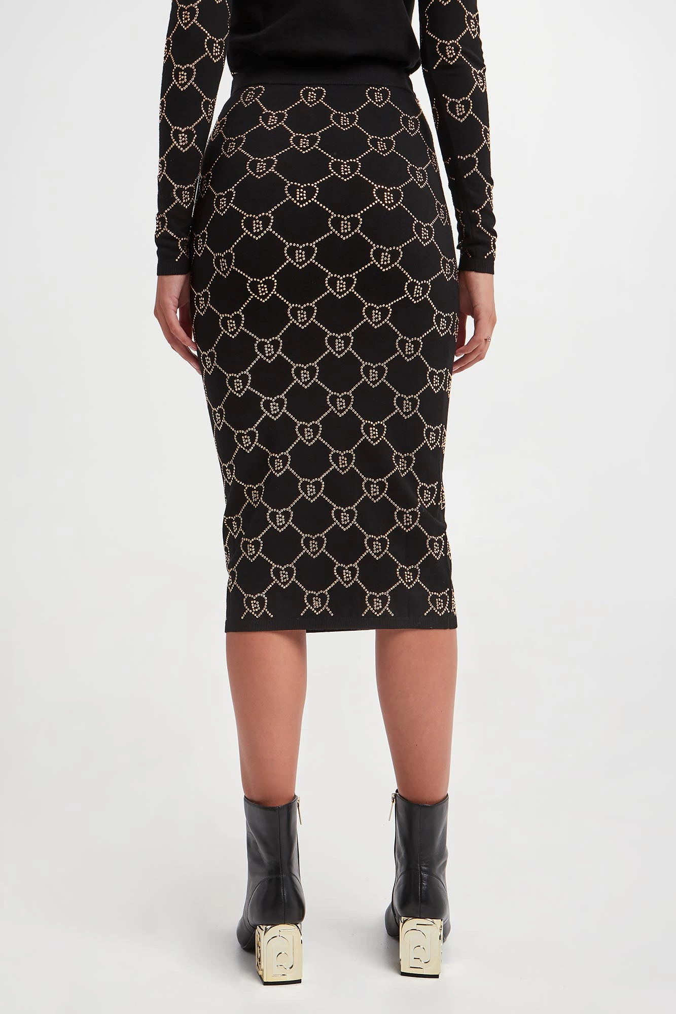 - Całość ozdobiona monogramami marki wykonanymi ze złotych kryształków.