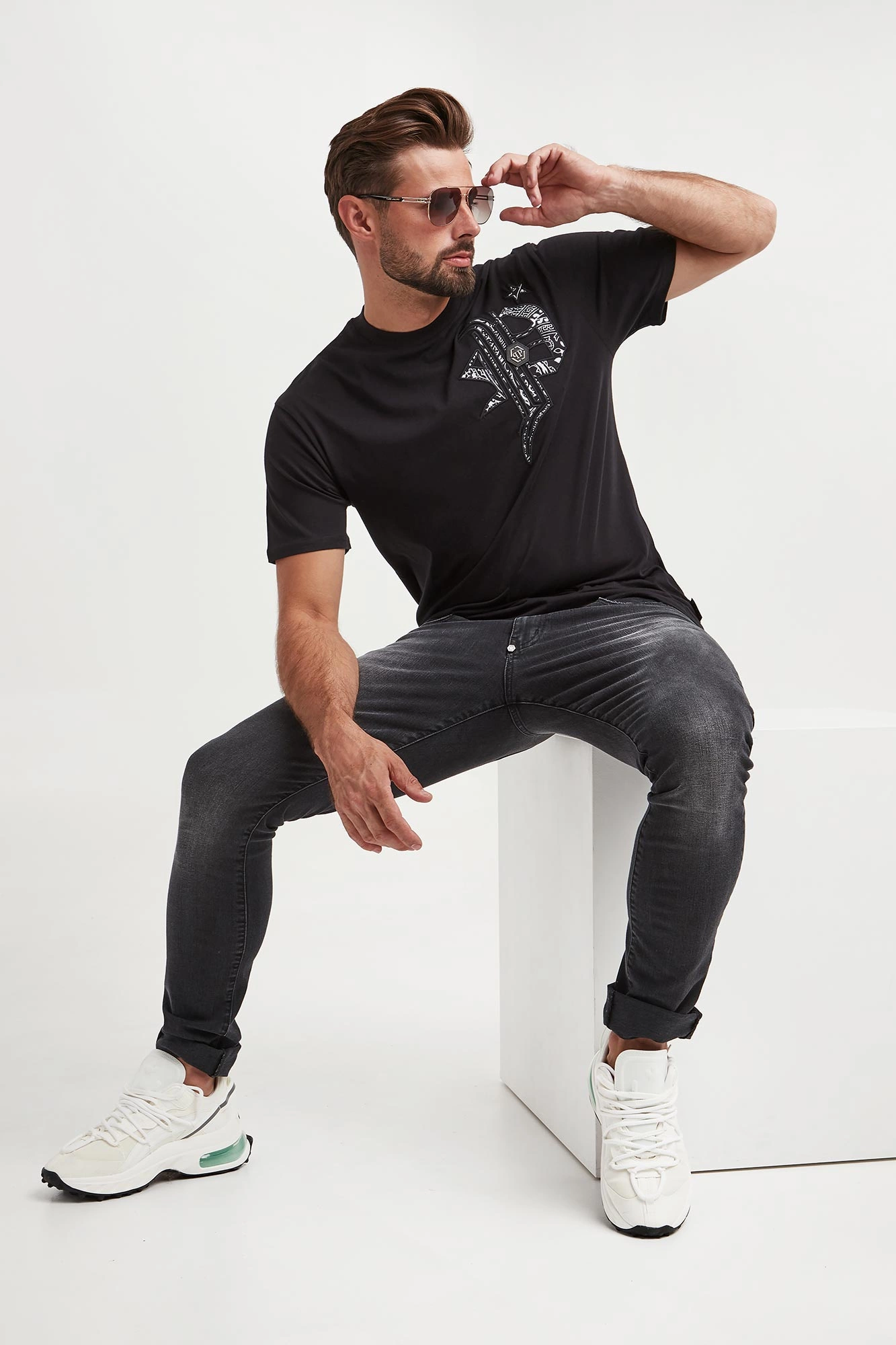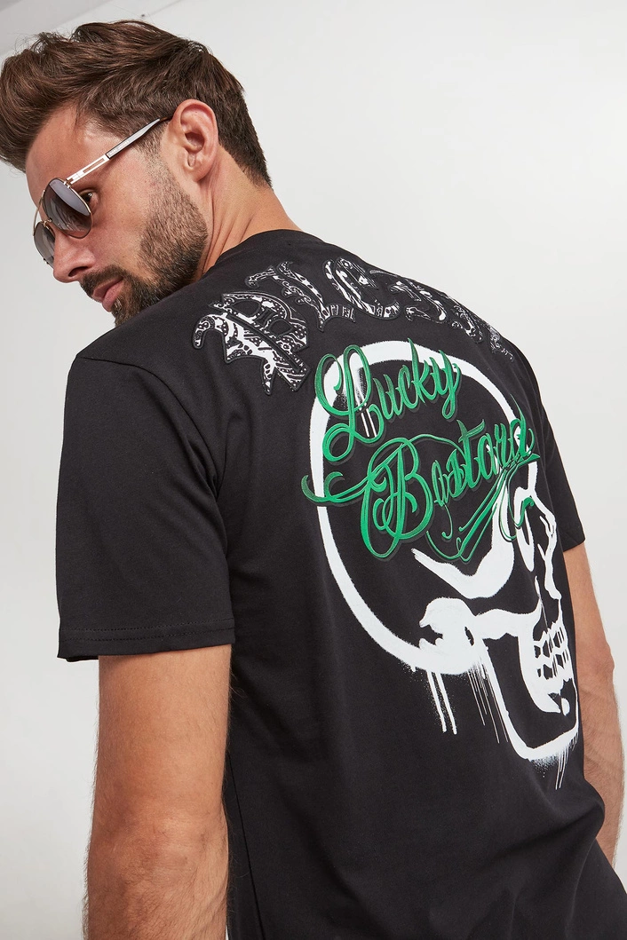 - Na piersi i plecach ozdobne hafty z logo oraz motywem czaszki.