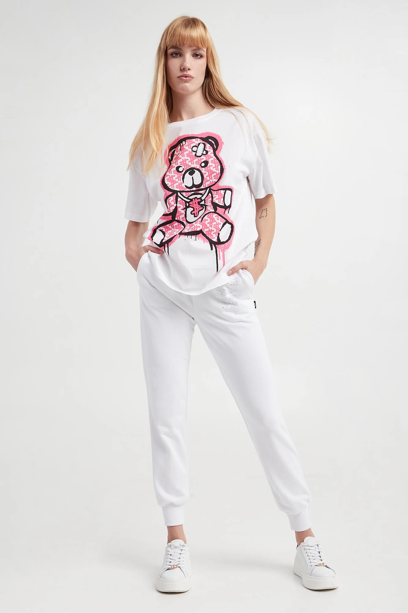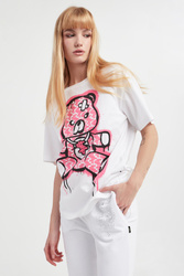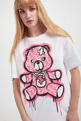 - Na froncie różowo-czarny nadruk z motywem misia.
