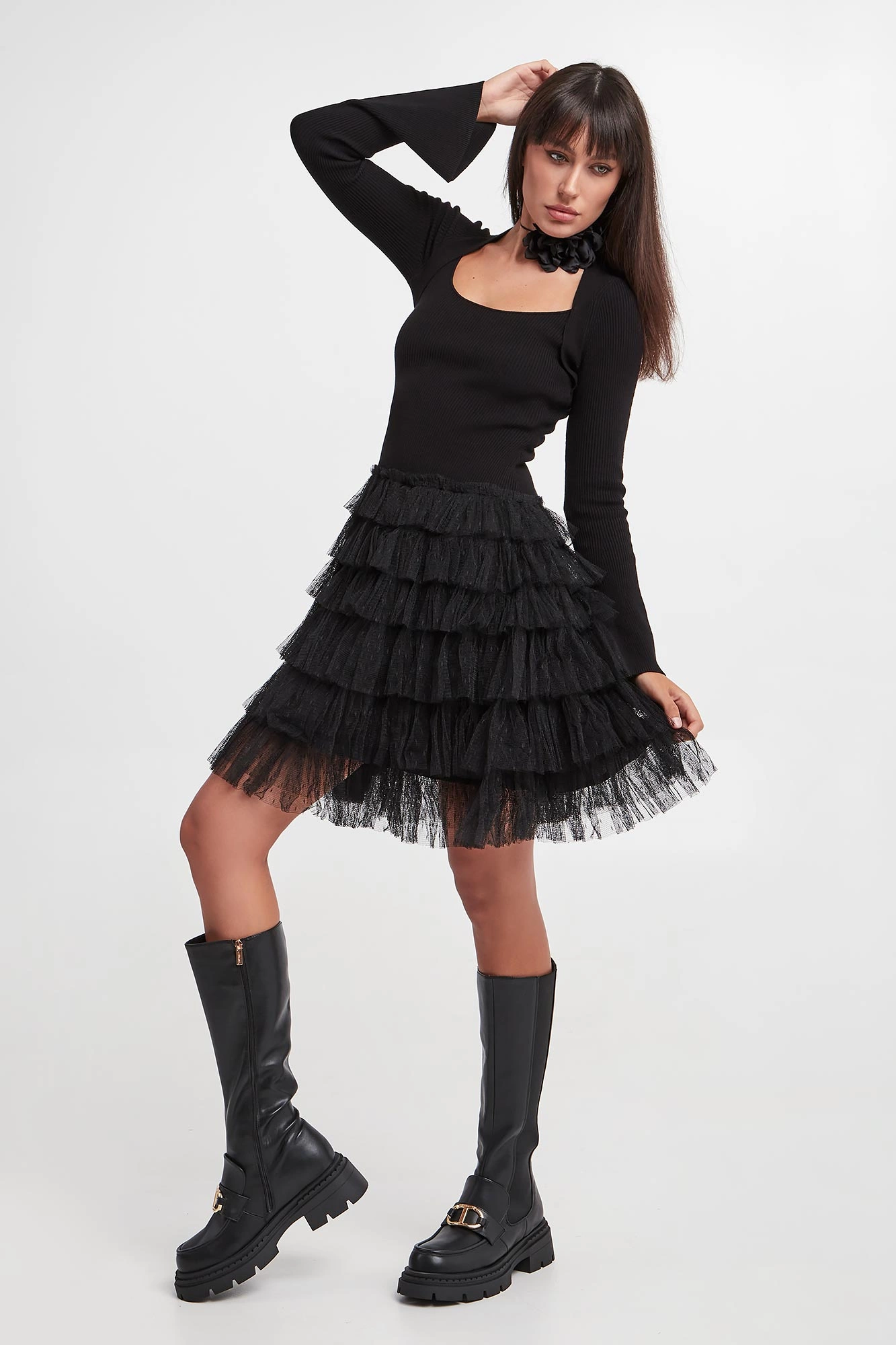 | Faktura: | Dzianina swetrowa Tiul Falbany |