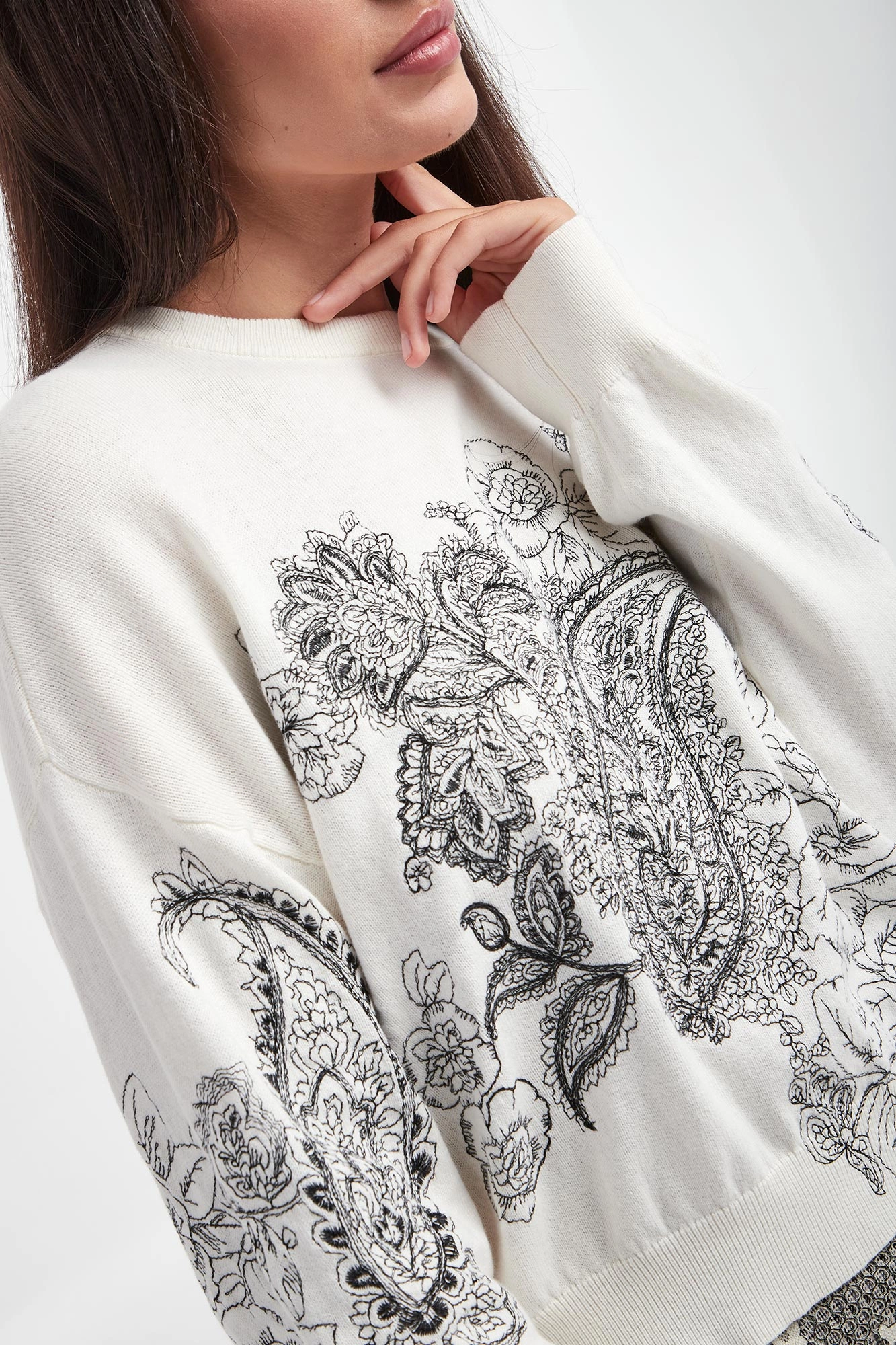 - Ozdobne hafty z motywem kwiatów.