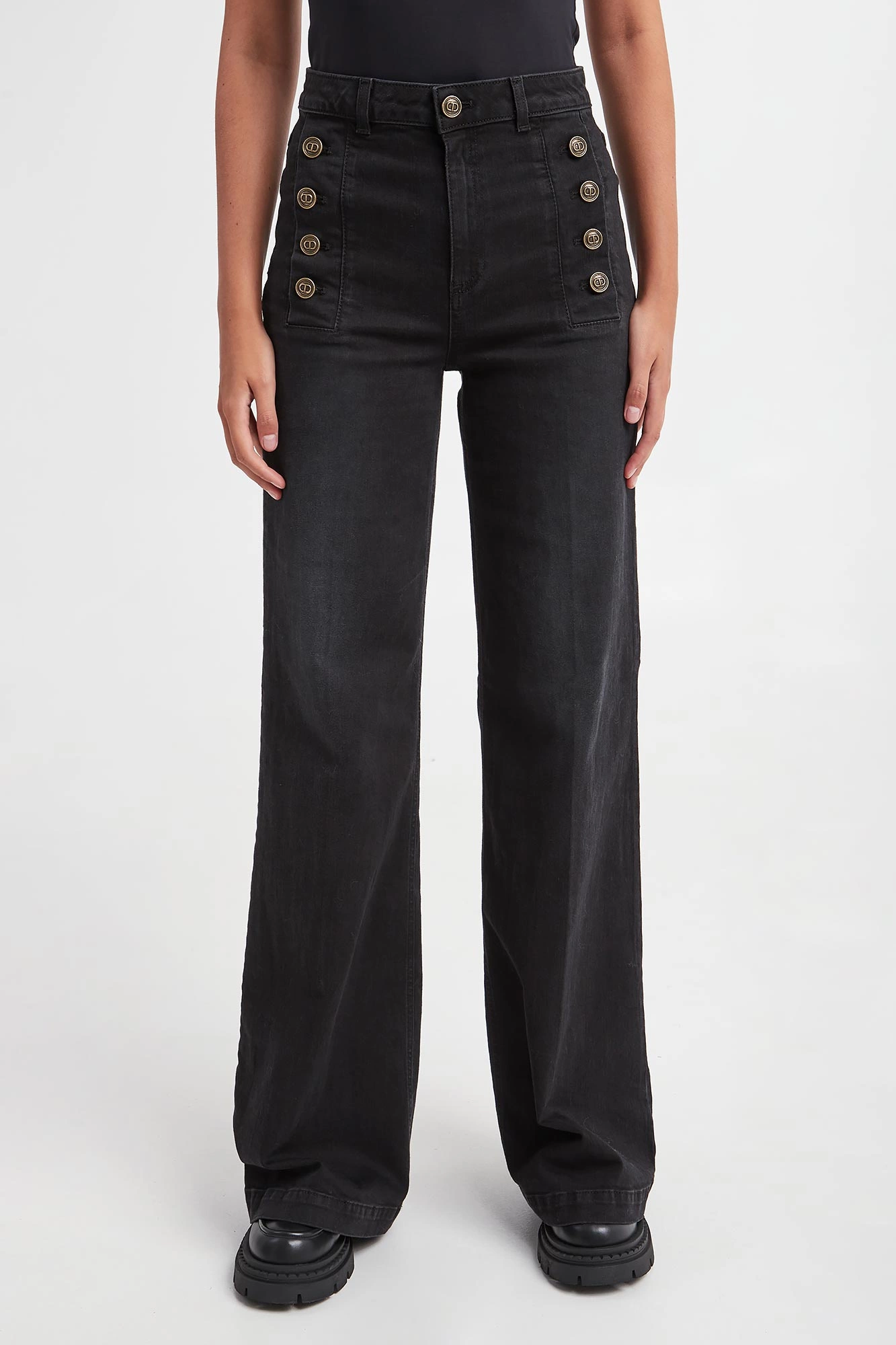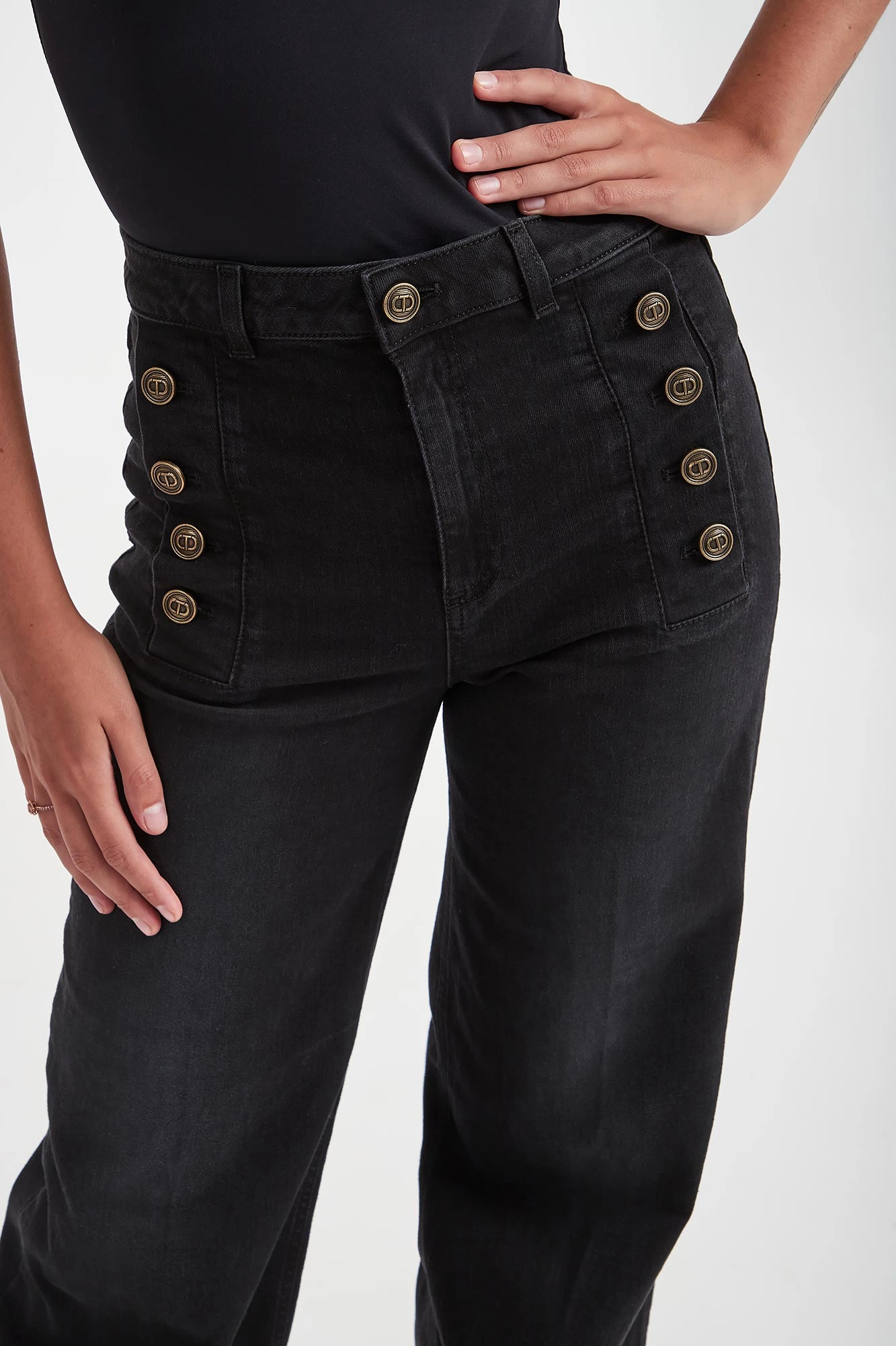 - Z przodu ozdobne sygnowane guziki.
