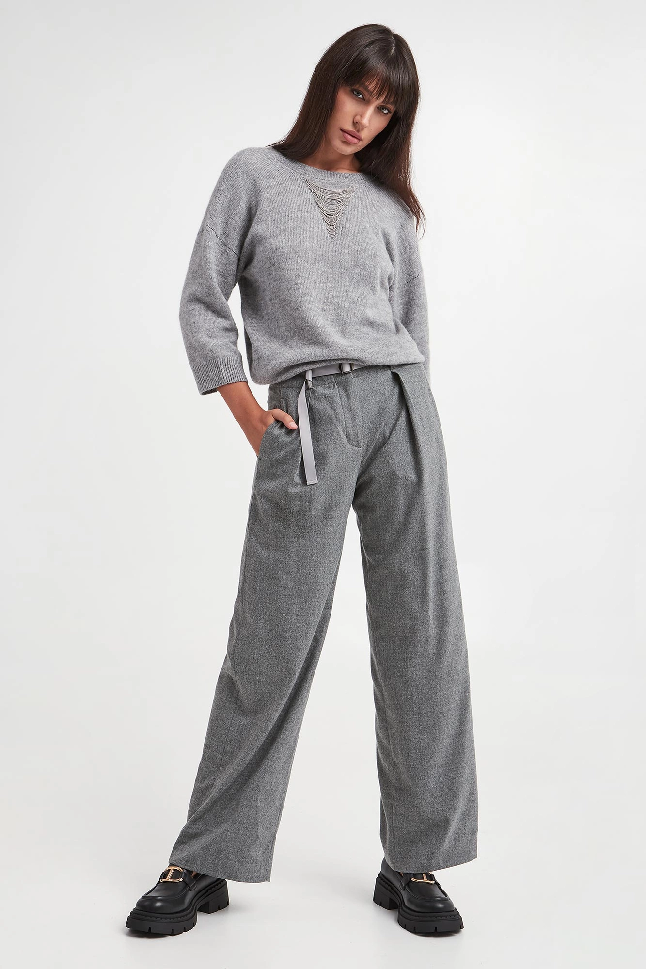- Wełniana flanela z elastycznymi włóknami i kaszmirem.