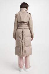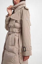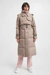 - Klasyczne elementy trenczu w postaci patki i pasków.